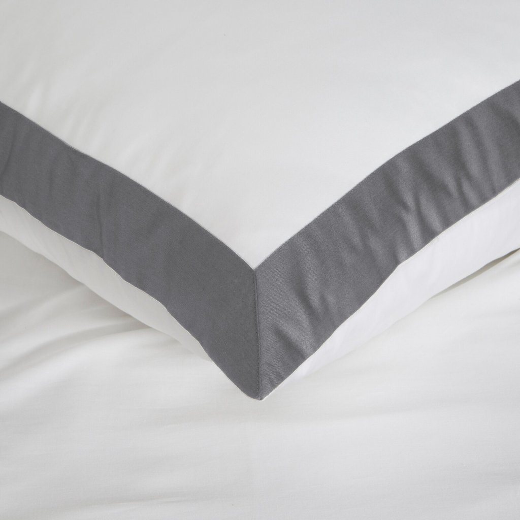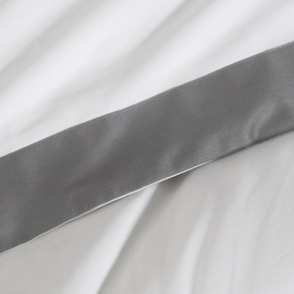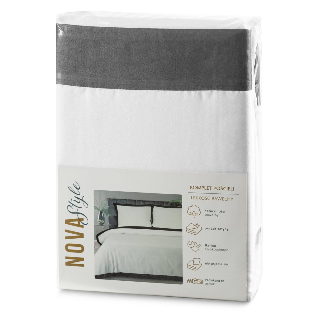 Saténové bavlněné povlečení s ozdobným barevným lemem, šířka: 160 cm, délka: 200 cm, povlaky na polštář: 2 ks 70x80 cm, barva: bílá a šedá, gramáž: 125 GSM, složení: 55 % bavlna, 45 % polyester.Doplňkové parametry