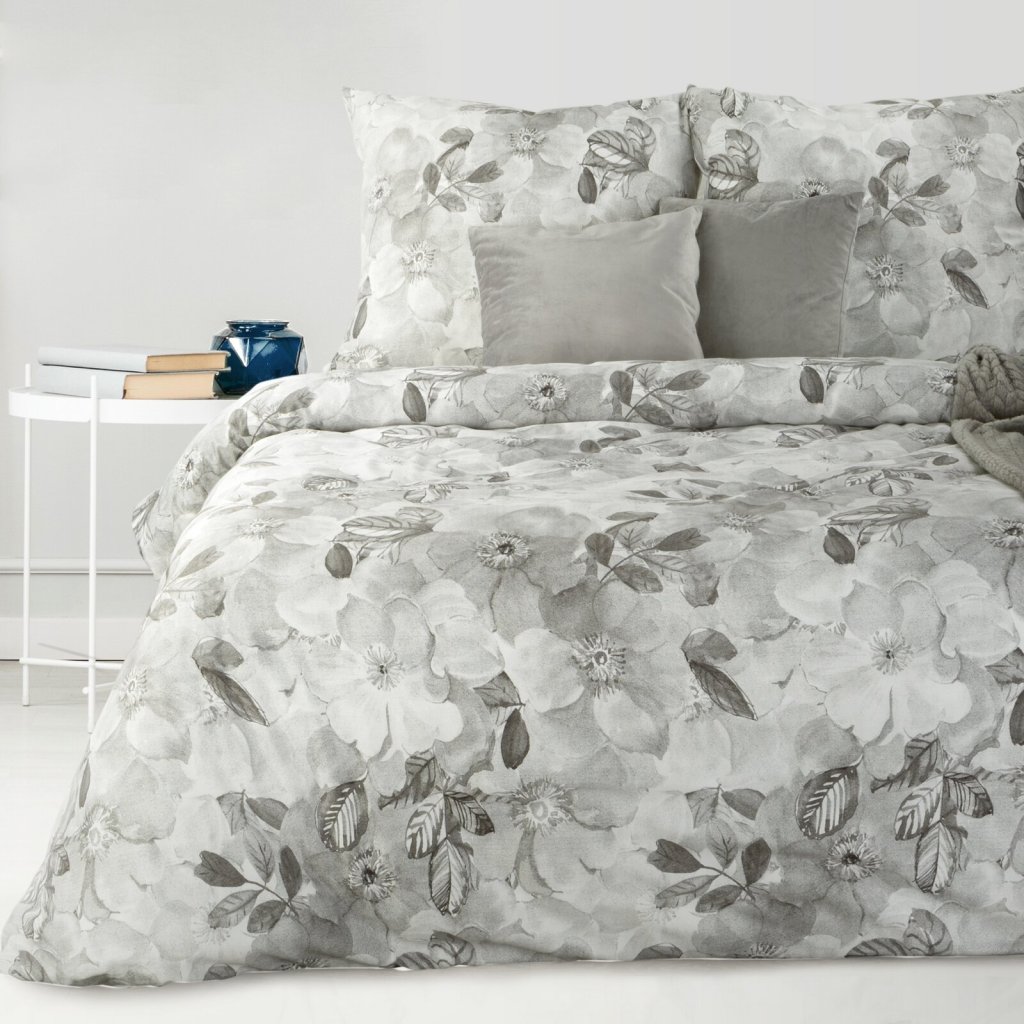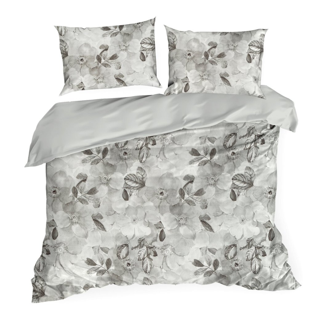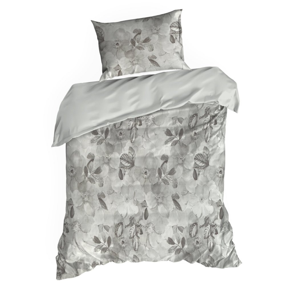 Bavlněná saténová ložní souprava s potiskem květin, šířka: 140 cm, délka: 200 cm , 1ks 70x90 cm, barva: šedá, gramáž: 125 GSM, složení: 100% bavlněný satén.Doplňkové parametry