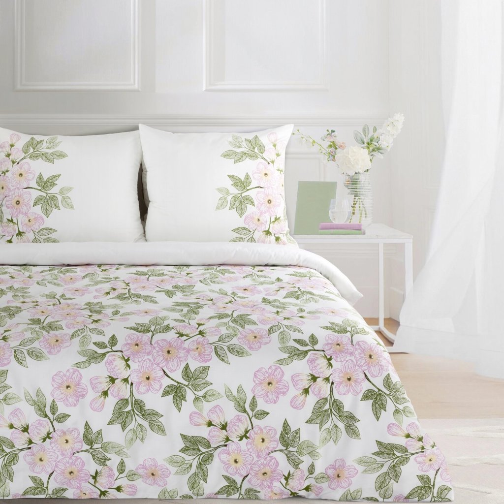 SATÉNOVÉ POVLEČENÍ NIKA44 200X220 CM, 2 KS 70X80 CM KVĚTY