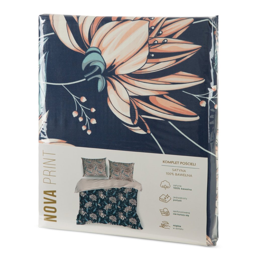 Ložní souprava NIKA je vyrobena z vysoce kvalitního bavlněného saténu s motivem květin. Moderní technika rotačního tisku zaručuje výrazný vzor a syté barvy zajišťují, že potisk neztratí na intenzitě ani po mnoha vypráních. Bavlněný satén je tkanina s charakteristickou vazbou, výjimečnou měkkostí a jemným leskem. Povlečení je opatřeno zipy krytými estetickým lemem. Šířka: 220 cm, délka: 200 cm, povlak na polštář 2 ks 70x80 cm, barva: vícebarevná, gramáž: 125 GSM, složení: 100% bavlna.Doplňkové parametry