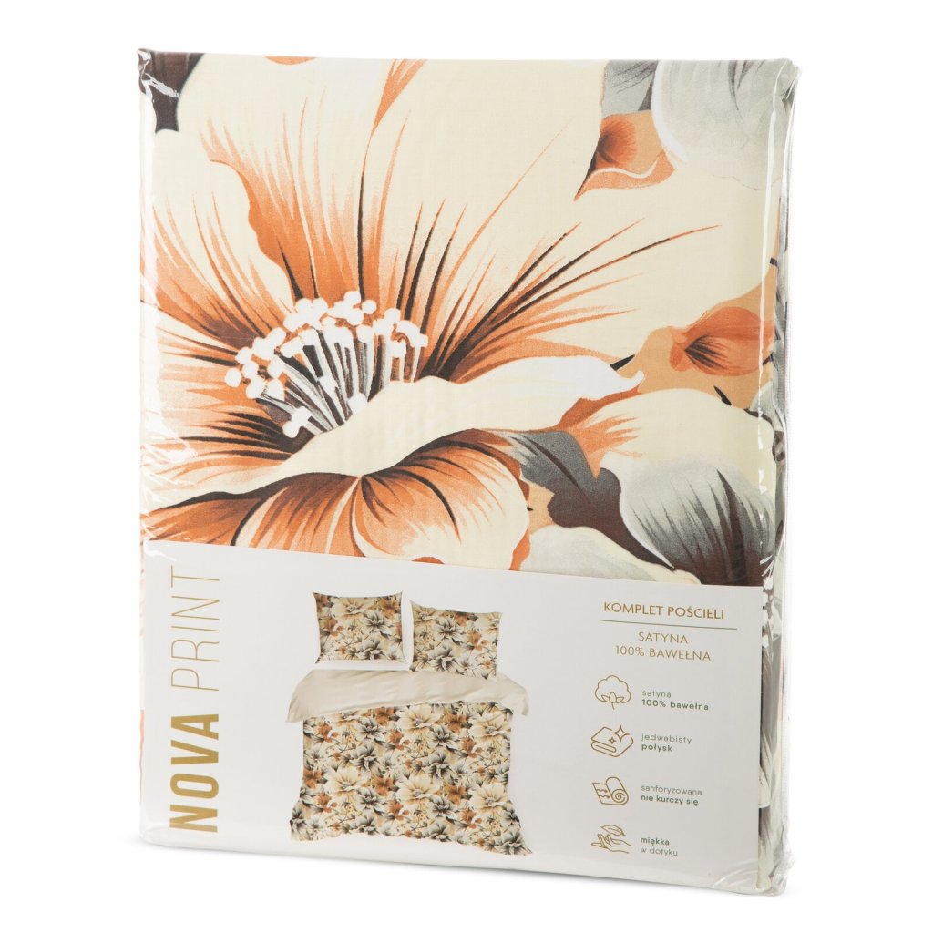 Ložní souprava NIKA je vyrobena z vysoce kvalitního bavlněného saténu s motivem květin. Moderní technika rotačního tisku zaručuje výrazný vzor a syté barvy zajišťují, že potisk neztratí na intenzitě ani po mnoha vypráních. Bavlněný satén je tkanina s charakteristickou vazbou, výjimečnou měkkostí a jemným leskem. Povlečení je opatřeno zipy krytými estetickým lemem. Šířka: 160 cm, délka: 200 cm, povlak na polštář 2 ks 70x80 cm, barva: vícebarevná, gramáž: 125 GSM, složení: 100% bavlna.Doplňkové parametry