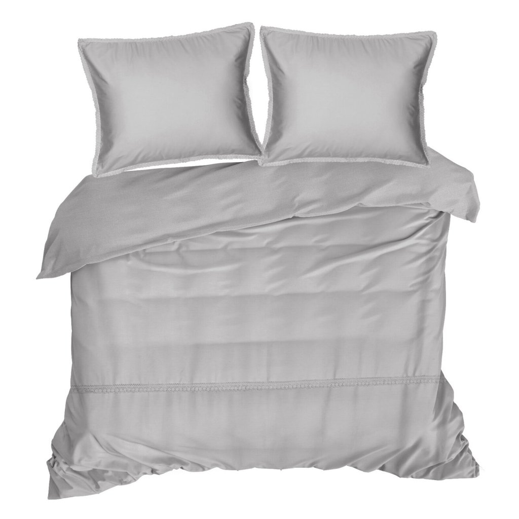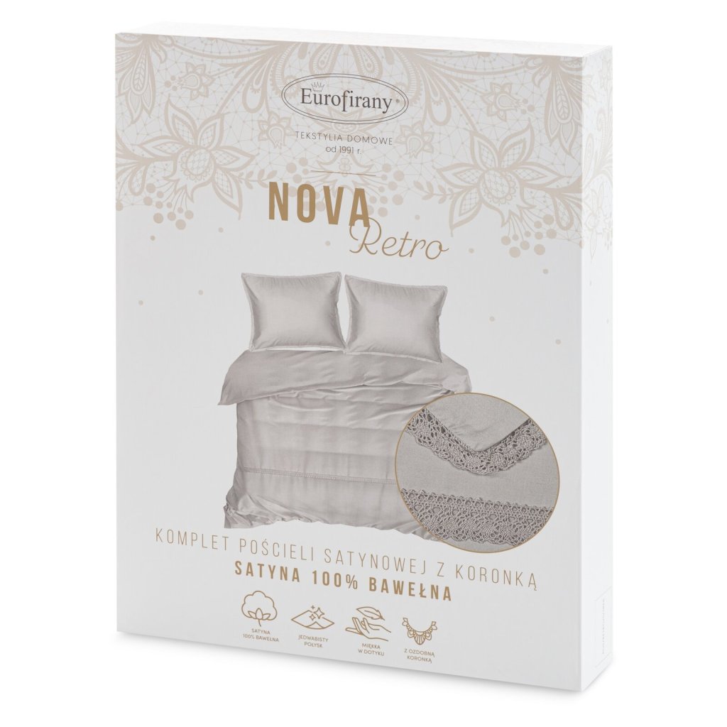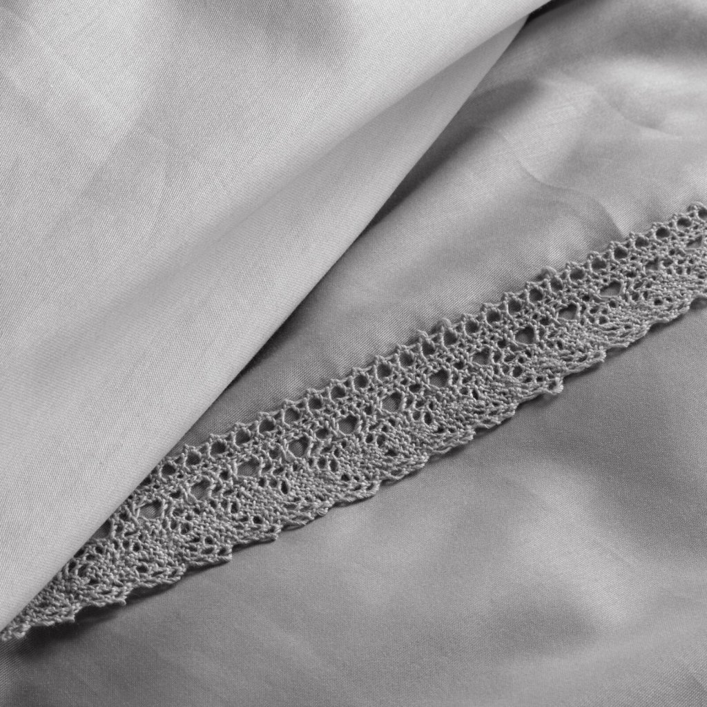 Souprava je vyrobena z nejkvalitnějšího bavlněného saténu, který kombinuje luxusní lesk saténu s přirozenou měkkostí a vzdušností bavlny. Jemná krajková aplikace dodává povlečení na jemnosti a romantice. Precizně provedená krajka zvyšuje exkluzivitu soupravy a dodává jí jedinečný charakter a eleganci. Ložní souprava je zabalena v dárkové krabici. Šířka: 220 cm, délka: 200 cm, povlak na polštář: 2 ks 70x80 cm, barva: světle šedá, gramáž: 115 GSM, složení: 100% bavlna; ozdobná krajka: 100% polyester.Doplňkové parametry