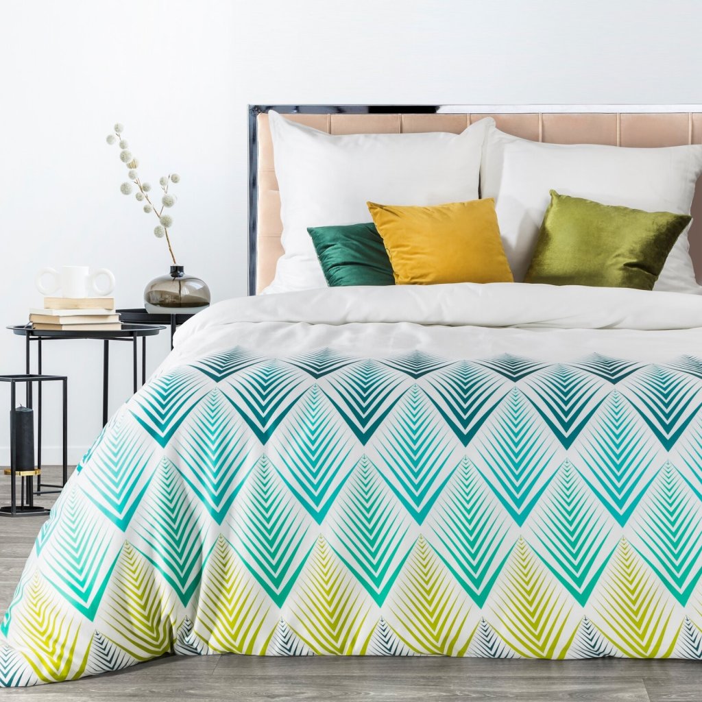 Dopřejte své ložnici moderní vzhled s tímto elegantním bavlněným saténovým povlečením. Bílý základ doplňuje originální geometrický vzor v odstínech zelené, modré a žluté, který působí svěže a stylově. Šířka: 220 cm, délka: 200 cm, povlak na polštář: 2 ks 70x80 cm, barva: vícebarevná, gramáž: 115 GSM, složení: 100% bavlna.Doplňkové parametry