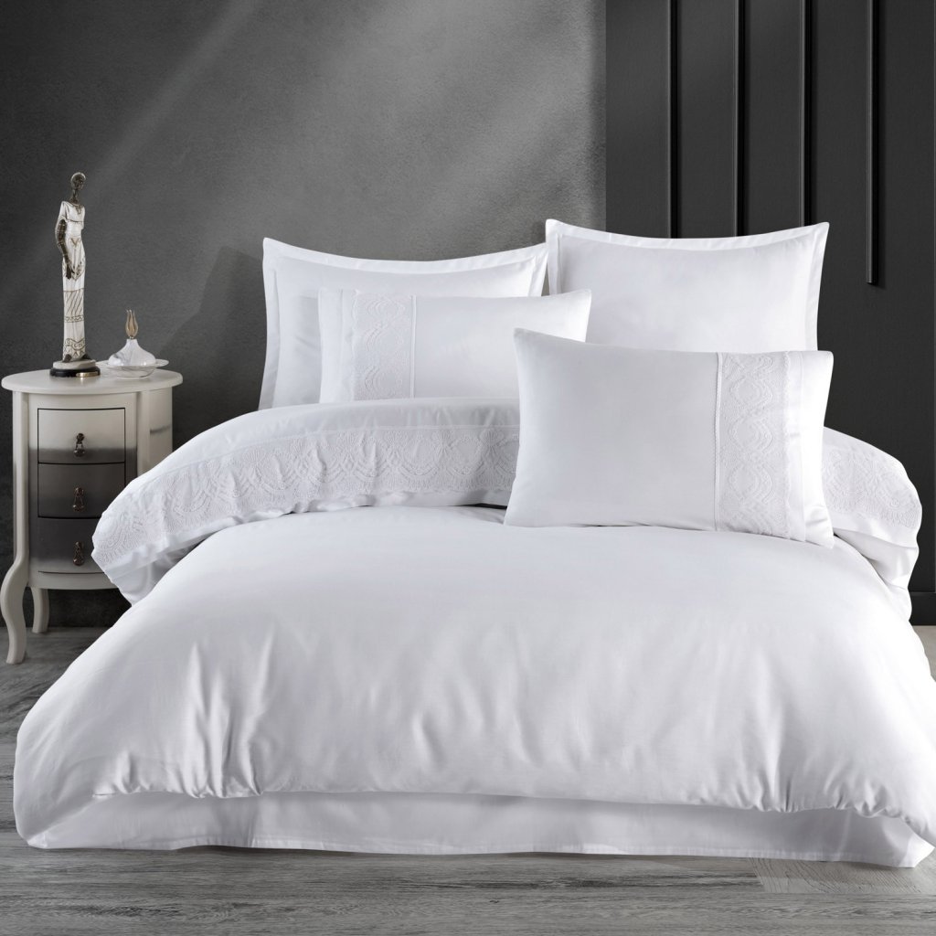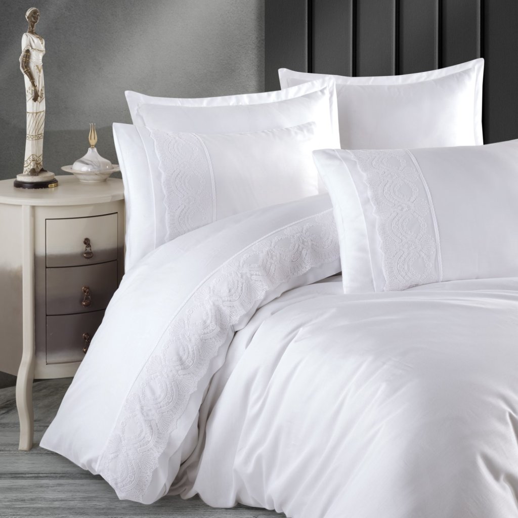 Luxusní a elegantní ložní souprava VALINOR je vyrobena z vysoce kvalitního bavlněného saténu tkaného z příze NE 40/1 o hustotě 210TC. Tato tkanina je velmi hladká, měkká a příjemná na dotek. Povlak na přikrývku a povlak na polštář jsou zdobeny proužky krajky. Povlak na přikrývku se zapíná na zip a povlaky na polštáře mají hotelový přehoz. Ložní soupravy jsou vyrobeny z látek s certifikátem OEKO-TEX. Materiál: 100% bavlna. Hmotnost: 125 g/m2. Rozměry: povlak na přikrývku 220x200 + 2 povlaky na polštář 70x80 cm. Zapínání: povlak na polštář má hotelový přesah, povlak na přikrývku má zip. Barvy na fotografiích výrobku se mohou mírně lišit od skutečnosti.Doplňkové parametry