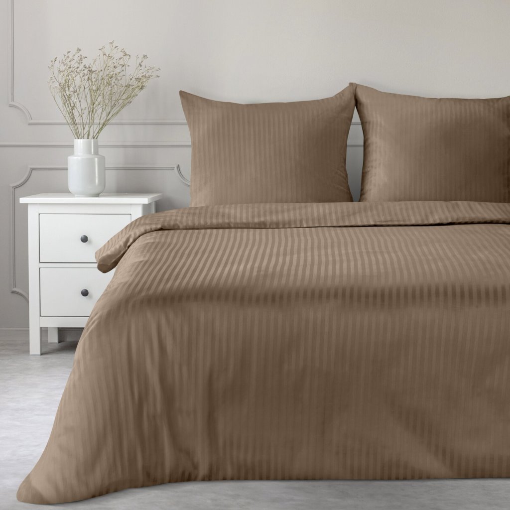 Ložní souprava s pruhy v saténovém damašku VERA z kolekce NOVA STYLE je elegantní volbou pro každého, kdo hledá dokonalou kombinaci moderního designu, pohodlí a vysoké kvality. Je vyrobena z bavlněné tkaniny se speciální vazbou. Jemné proužky na povrchu povlečení dodávají soupravě elegantní strukturu a luxusní charakter. Pro pohodlné používání je souprava vybavena praktickým skrytým zipem. Šířka: 140 cm, délka: 200 cm, 1 kus 70x80 cm, barva: hnědá, gramáž: 125 GSM, složení: 100% bavlna.Doplňkové parametry