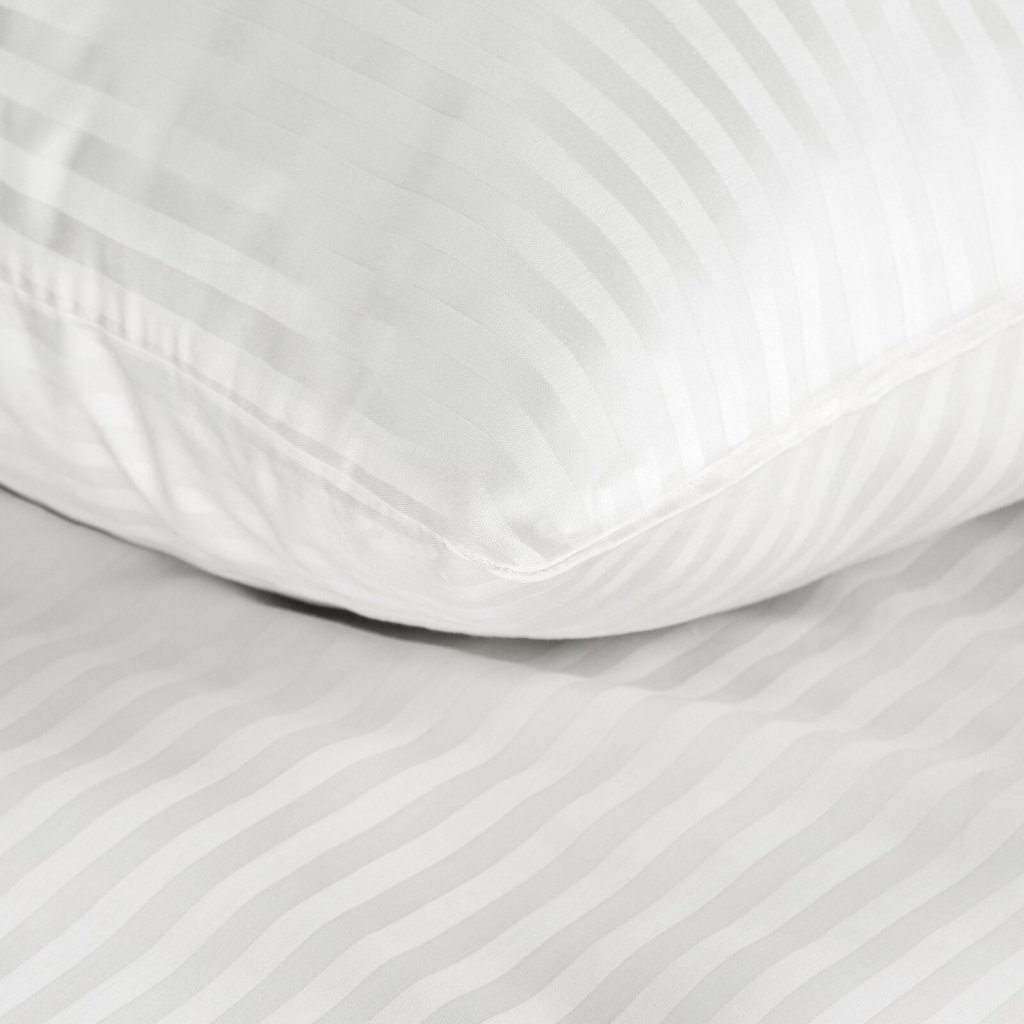 Jednobarevná ložní souprava s pruhy ze saténového damašku, šířka: 160 cm, délka: 200 cm, 2 ks 70x80 cm, barva: bílá, gramáž: 125 GSM, složení: 100% bavlna.Doplňkové parametry