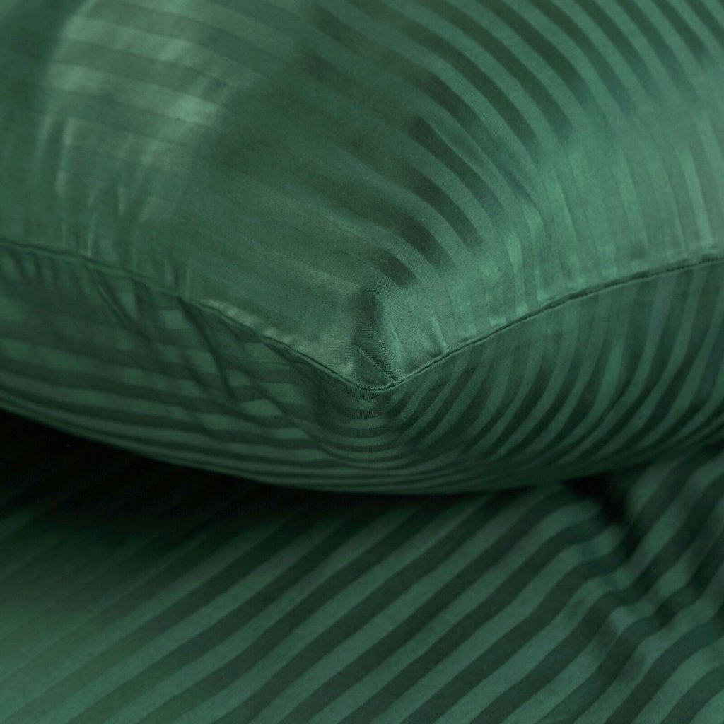 Jednobarevná ložní souprava s pruhy ze saténového damašku, šířka: 160 cm, délka: 200 cm, 2 ks 70x80 cm, barva: tmavě zelená, gramáž: 125 GSM, složení: 100% bavlna.Doplňkové parametry