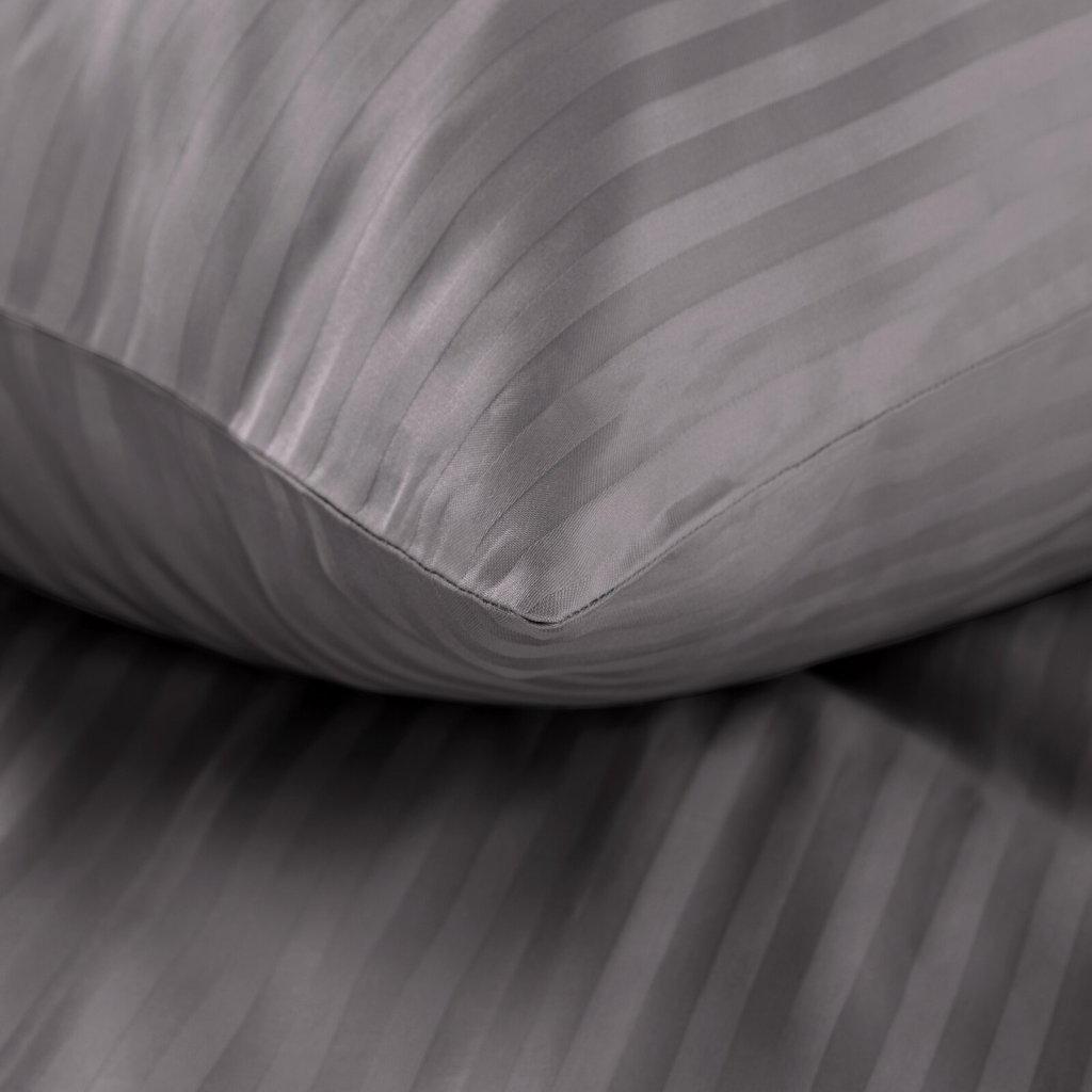 Jednobarevná ložní souprava s pruhy ze saténového damašku, šířka: 200 cm, délka: 220 cm, 2 ks 70x80 cm, barva: šedá, gramáž: 125 GSM, složení: 100% bavlna.Doplňkové parametry