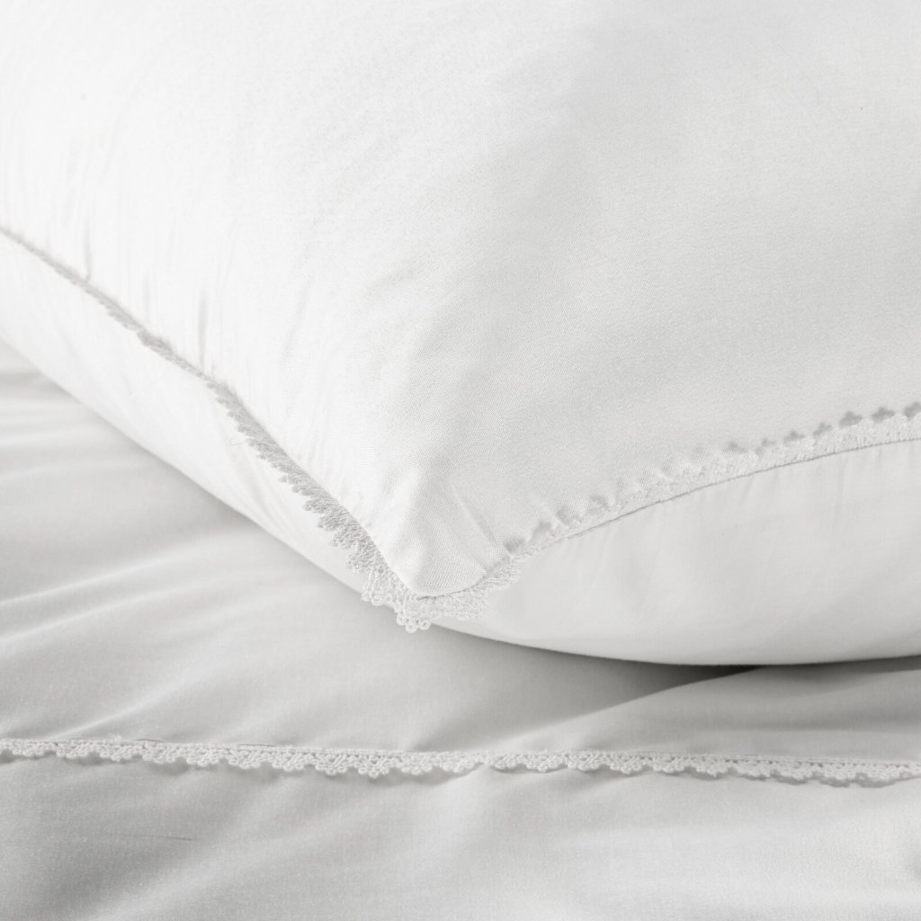 Povlečení se saténovou vazbou, zdobené krajkou, šířka: 220 cm, délka: 200 cm, povlaky na polštář: 2 ks 70x80 cm, barva: bílá, hmotnost: 125 GSM, složení: 55 % bavlna, 45 % polyester.Doplňkové parametry