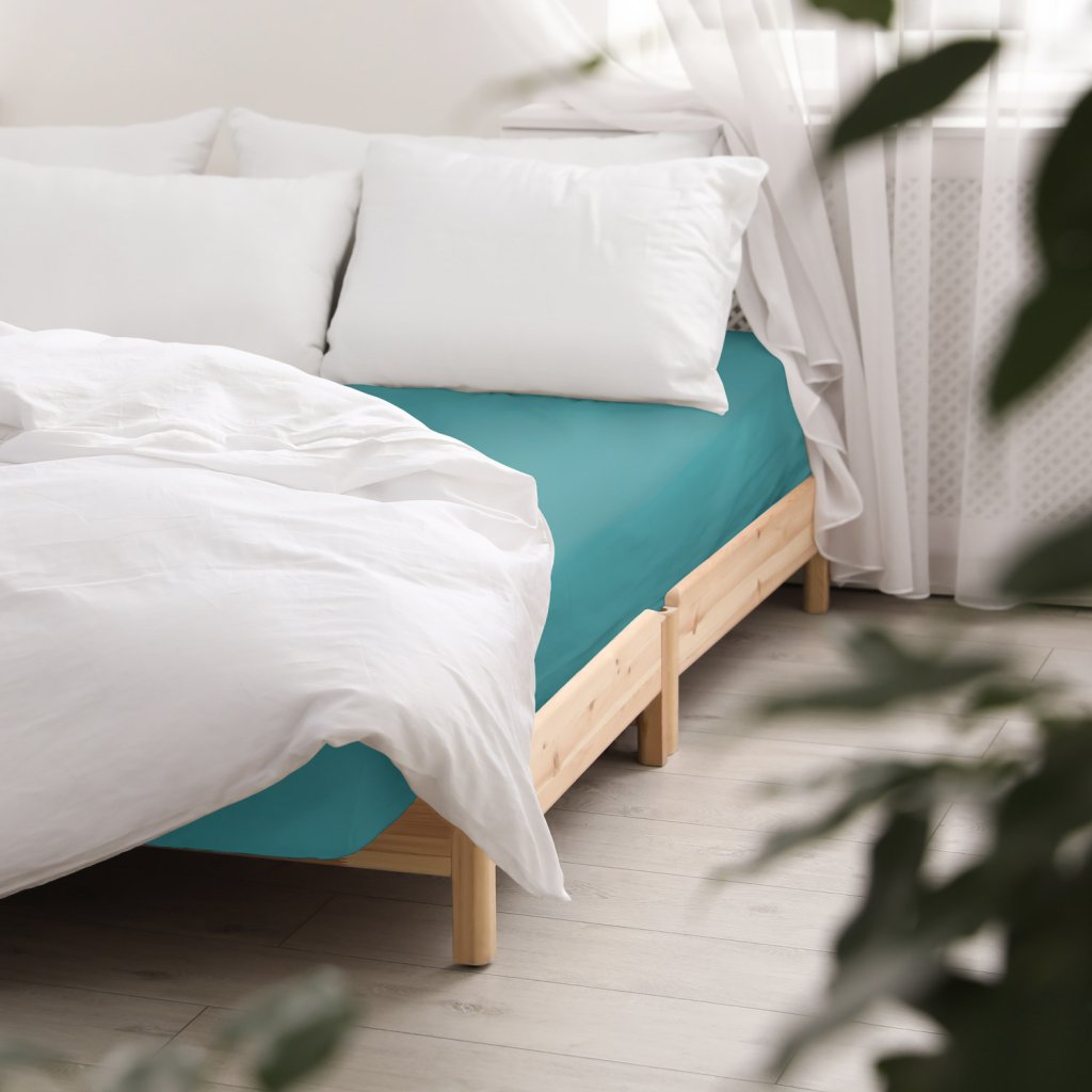 SATÉNOVÉ PROSTĚRALO BEZ GUMY 160X200 CM TMAVĚTYRKYSOVÁ