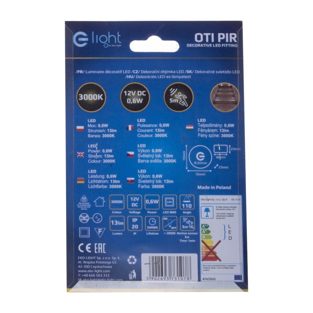 Schodišťové LED svítidlo Oti, 1x LED 0,6w, 3000k, s, pohybový senzor