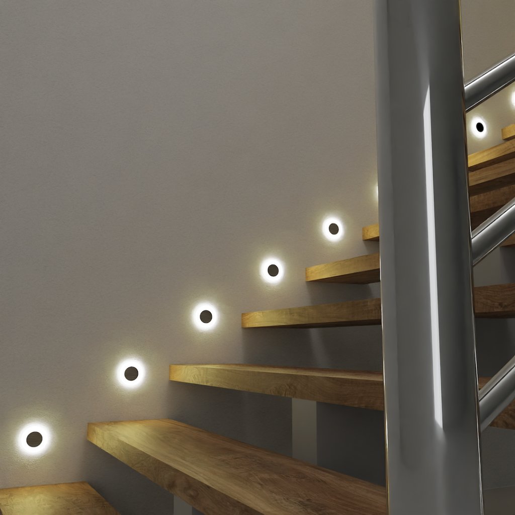Schodišťové LED svítidlo je praktickým a zároveň dekorativním osvětlením , které najde využití v interiérech jako doplňkové osvětlení chodeb , osvětlení schodišť , ale i při efektním podsvícení nábytku či vytváření světelných kompozicí . Díky svému kompaktnímu designu se jednoduše montuje do instalační krabice o průměru 60 cm a připojuje přímo na napětí 230V, což umožňuje rychlou a nenáročnou instalaci.