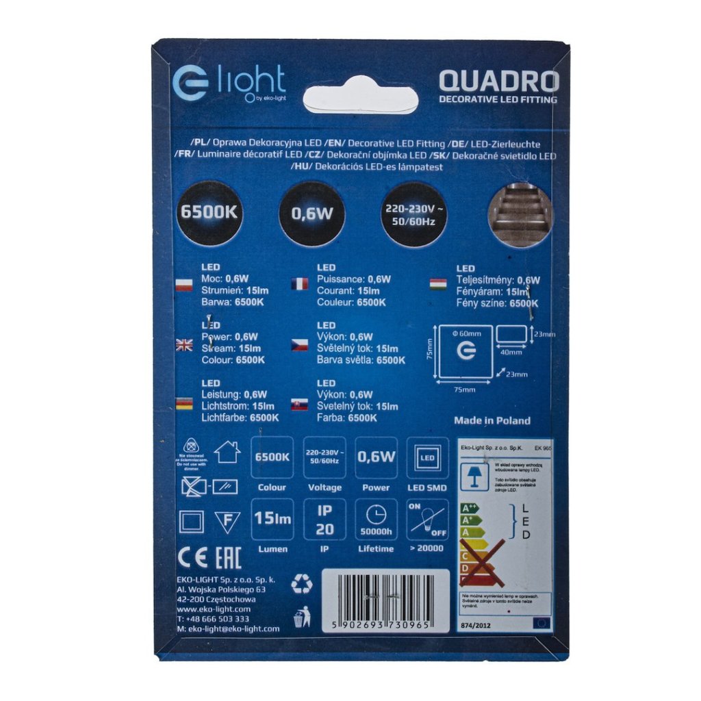 Schodišťové LED svítidlo Quadro, 1x LED 0,6w, 6500k, s