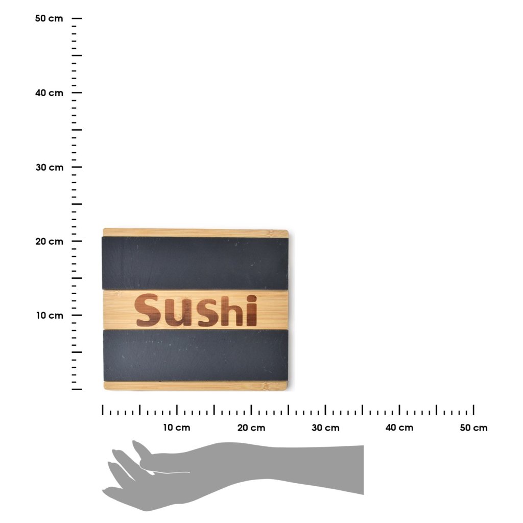 Sushi set s bambusovým podnosem a břidlicovými vložkami je dokonalým řešením pro všechny milovníky japonské kuchyně, kteří si cení estetiky i funkčnosti. Sada obsahuje elegantní podnos z přírodního bambusu, zdobený nápisem „Sushi“ a dvě břidlicové vložky, které dokonale kontrastují s bambusovou úpravou. Břidlicové povrchy jsou ideální pro servírování sushi, sashimi a jiných jemných jídel, zajišťují jejich optimální prezentaci a zachovávají čerstvost. Sada obsahuje také dvě porcelánové misky na sójovou omáčku nebo wasabi, dva stojany na hůlky a dva páry bambusových hůlek, které zajišťují pohodlí a přesnost při jídle. Podnos nejen usnadňuje servírování, ale zároveň dodává každé kuchyni elegantní akcent. Je to vynikající volba jak pro každodenní použití, tak pro speciální příležitosti, tak skvělý tip na dárek pro nadšence sushi a orientální kuchyně.Rozměr: 25,5x22,5x3 cm