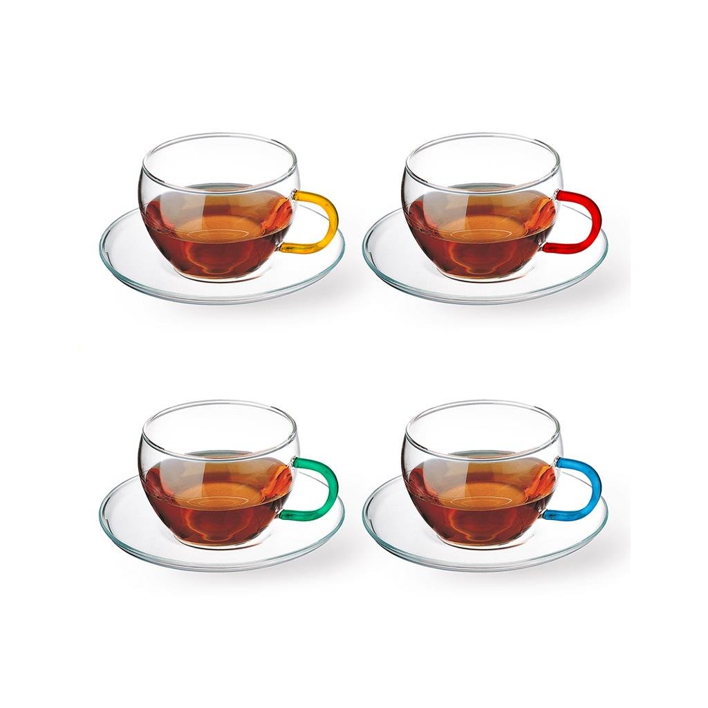 Skleněné šálky s podšálky jsou vyrobeny z vysoce kvalitního žáruvzdorného skla, které je odolné vůči teplotám od -40 °C do 300 °C a je určeno pro styk s potravinami. Sklo SIMAX je vysoce odolné vůči chemikáliím, je hladké, dokonale průhledné. Každý šálek má objem 250 ml, je ideální na čaj a kávu, cappuccino. Materiál: žáruvzdorné borosilikátové sklo. Objem: 250 ml. obsahuje: 4 šálky + 4 podšálky.