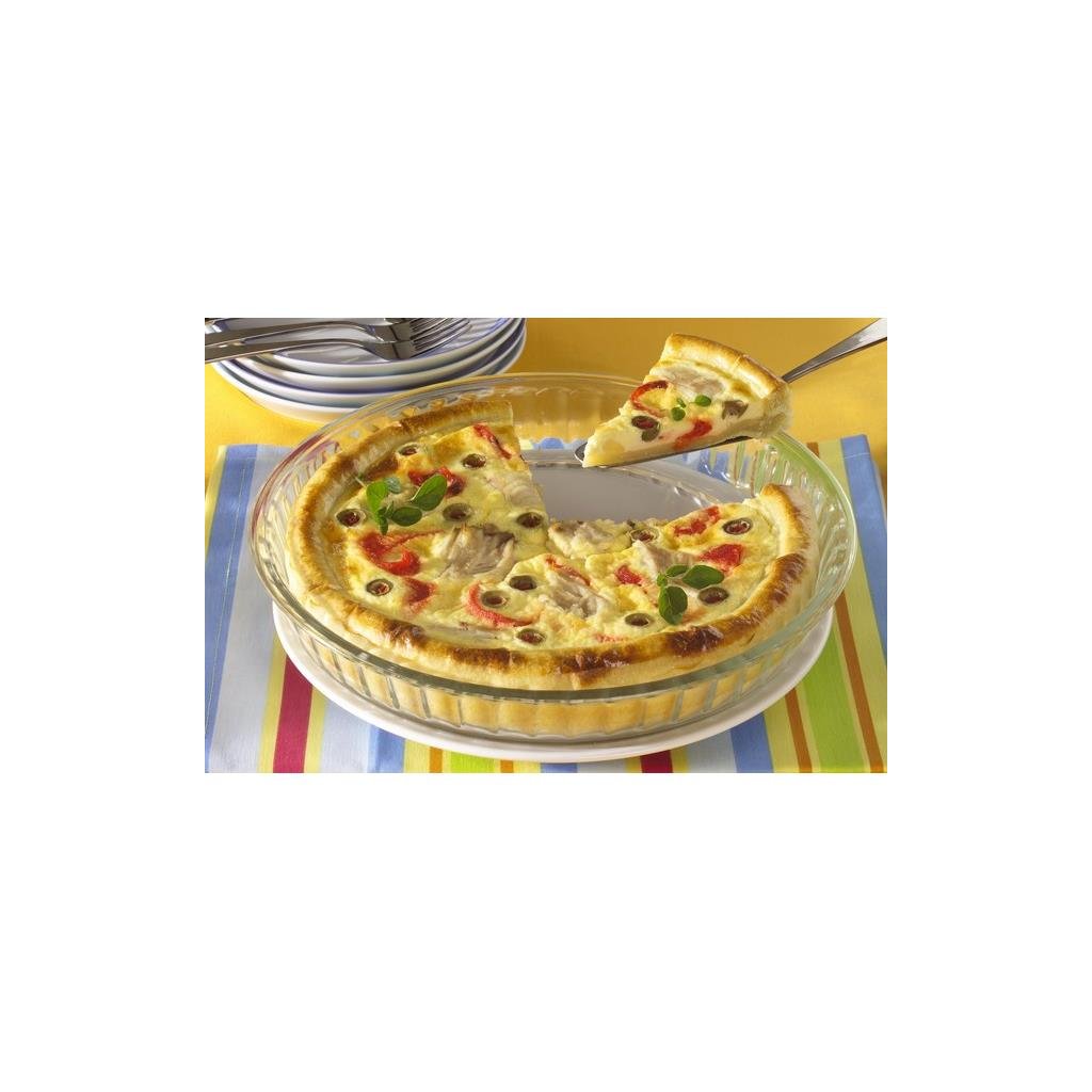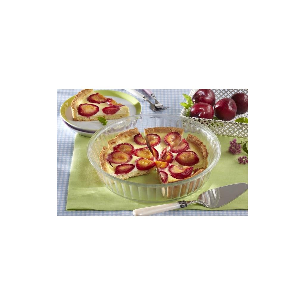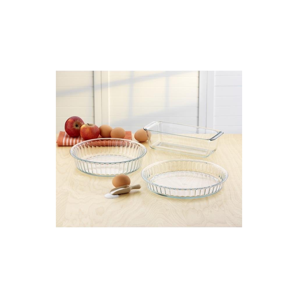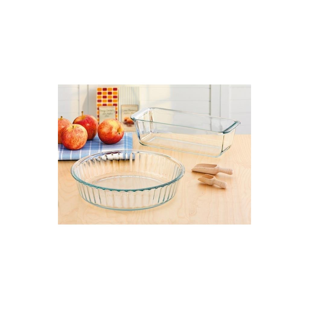 Skleněná forma, skleněná nádoba na pečení koláčů a jiných dortů, je vyrobena z vysoce kvalitního žáruvzdorného skla, které je odolné vůči teplotám od -40 °C do 300 °C a je určeno pro styk s potravinami. Sklo SIMAX je vysoce odolné vůči chemikáliím; je hladké a neporézní, dokonale průhledné a odolné vůči korozi. Skleněná forma postupně uvolňuje teplo a koláč je dokonale upečený; je vhodná pro všechny typy trub.Skleněná forma na pečení koláčů a jiného pečiva