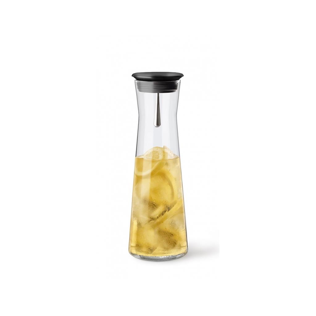 Skleněné karafy na vodu INDIS jsou vyrobeny z vysoce kvalitního žáruvzdorného skla, které je odolné vůči teplotám od -40 °C do 300 °C. Určeno pro styk s potravinami. Sklo SIMAX má vysokou odolnost vůči chemikáliím; je hladké a neporézní, dokonale průhledné a odolné vůči korozi. Skleněná karafa má objem 1,1 l a je ideální pro vodu s mátou a citronem. Skleněná karafa má moderní design. Pro nalití vody do sklenice není třeba z karafy odstraňovat kovovou zátku - stačí karafu naklonit a sítko, které je součástí zátky karafy, udrží kousky citronu nebo máty.Skleněná karafa s plastovou zátkou