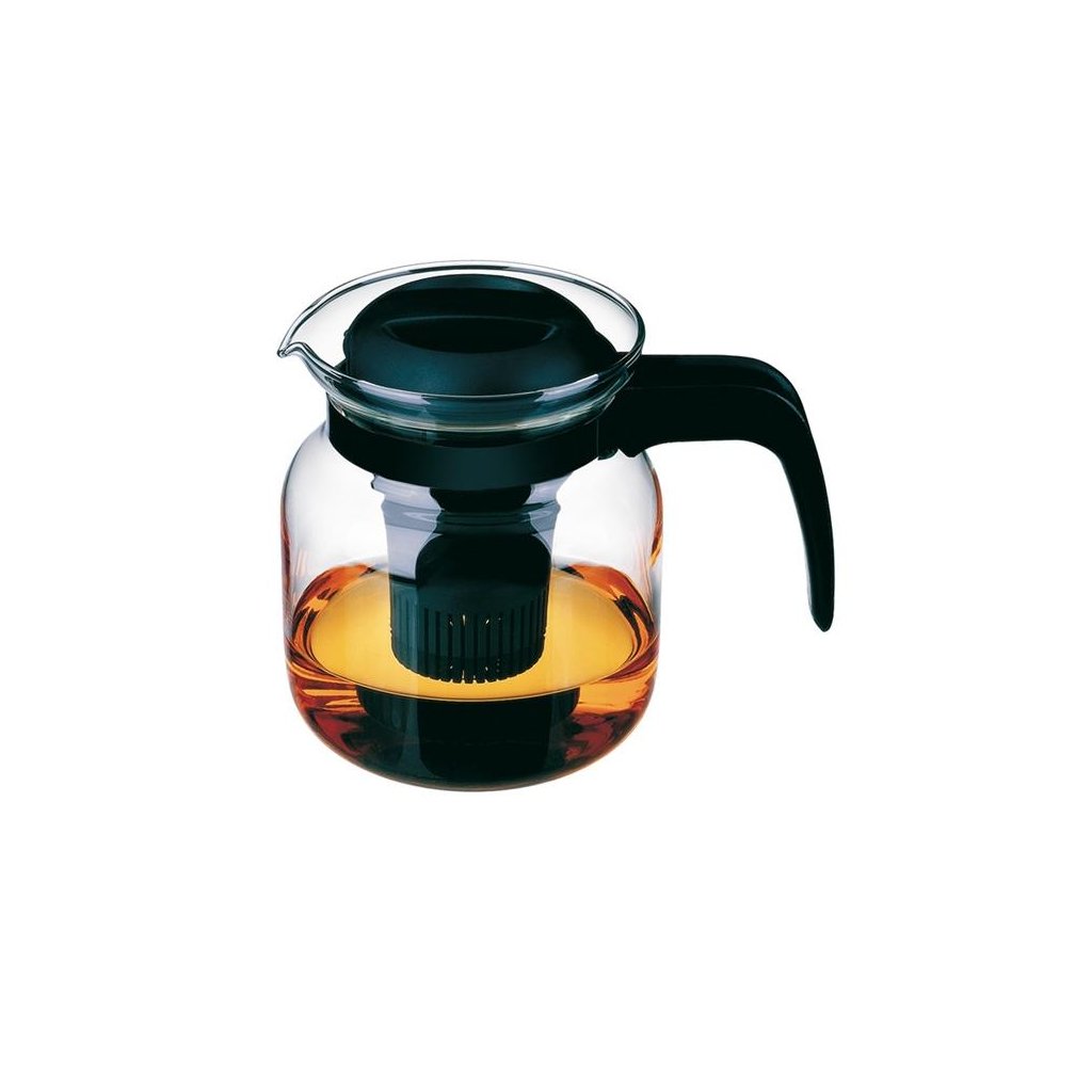 Skleněný džbán s plastovým víkem, uchem a uzávěrem je vyroben z vysoce kvalitního žáruvzdorného skla, které je odolné vůči teplotám od -40 °C do 300 °C, určeného pro styk s potravinami. Sklo SIMAX má vysokou odolnost vůči chemikáliím; je hladké a neporézní, dokonale průhledné a odolné vůči korozi. Konvice má objem 1 l a je ideální pro přípravu čaje, kávy a dalších horkých nápojů.Skleněná konvice MATURE se sítkem na čaj, kávu a další horké nápoje - s plastovými prvky (víko a rukojeť); konvice má také plastový filtr na louhování čaje, např. pro přípravu čaje, kávy a dalších horkých nápojů, např. pro přípravu čaje, kávy a dalších horkých nápojů. Materiál: žáruvzdorné borosilikátové sklo
