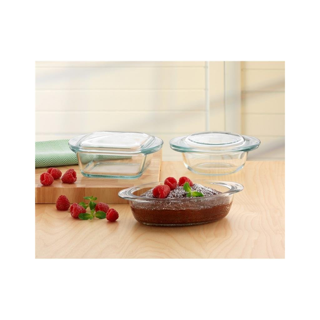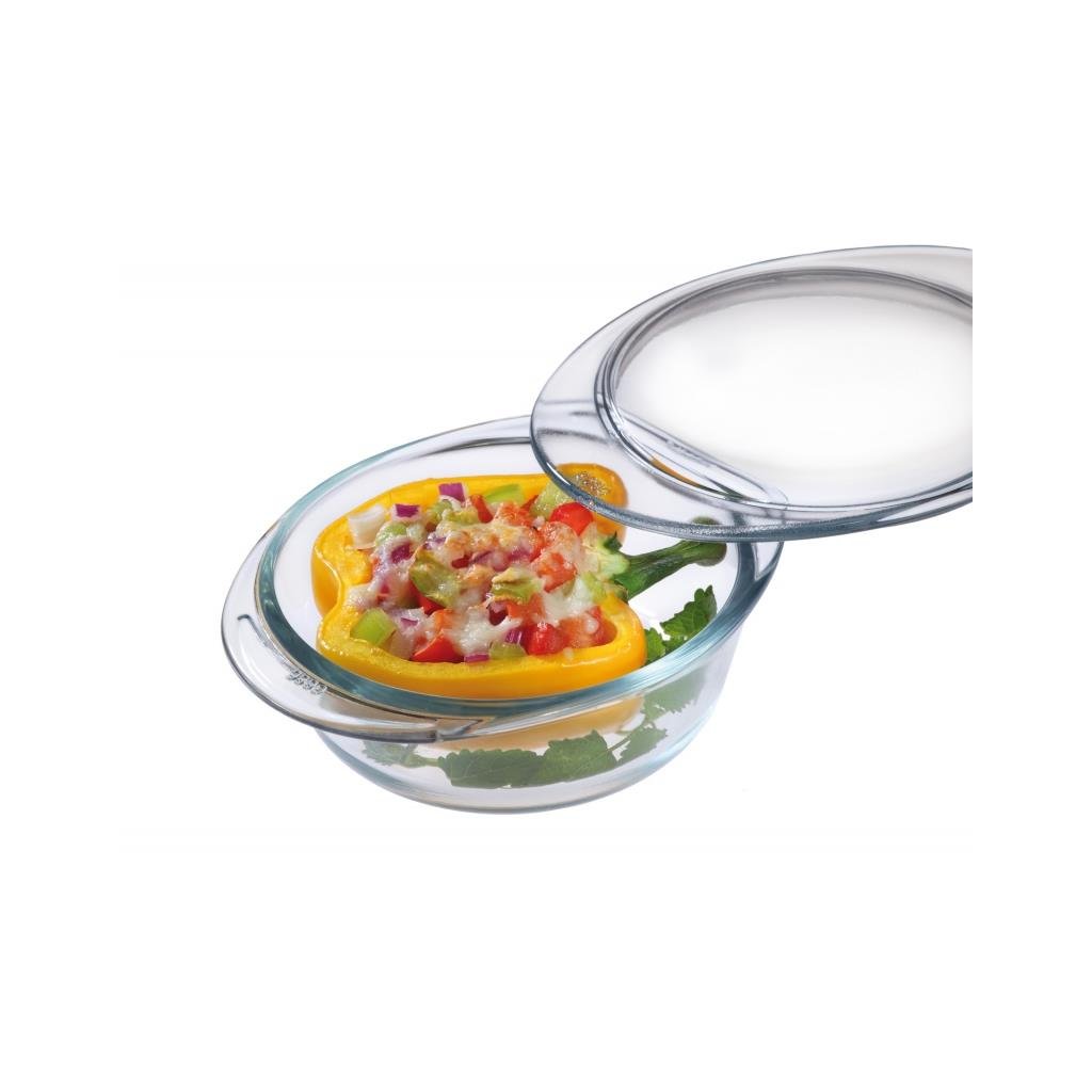Kulatá skleněná mísa s víkem je vyrobena z vysoce kvalitního žáruvzdorného skla, které je odolné vůči teplotám od -40 °C do 300 °C, je určeno pro styk s potravinami a lze jej používat v jakékoli troubě. Sklo SIMAX je vysoce odolné vůči chemikáliím; je hladké a neporézní, dokonale průhledné a odolné vůči korozi. Nádoba má objem 0,25 l a je univerzálně vhodná pro pečení, dušení a zapékání - kolekce MINI.Materiál: žáruvzdorné borosilikátové sklo