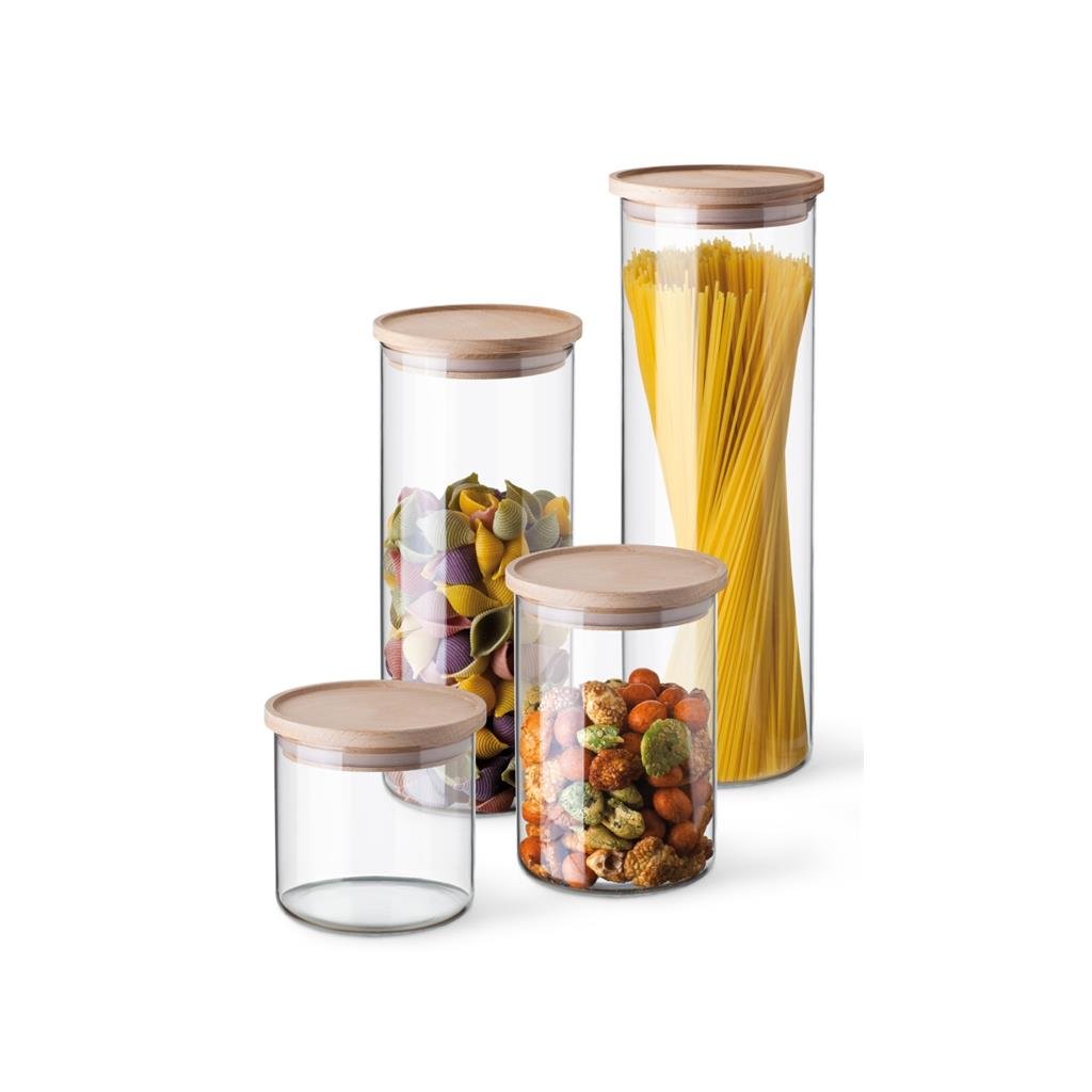Skleněné nádoby, tuby s plastovým/dřevěným víkem byly vyrobeny z vysoce kvalitního žáruvzdorného skla, které je odolné vůči teplotám od -40 °C do 300 °C. Určeno pro styk s potravinami. Sklo SIMAX má vysokou odolnost vůči chemikáliím; je hladké a neporézní, dokonale průhledné a odolné proti korozi. Nádoby jsou ideální pro skladování potravin včetně sypkých nebo suchých produktů, jako je mouka, cukr, rýže, kroupy, těstoviny.Skleněná nádoba na potraviny, tuba s plastovým/dřevěným víkem