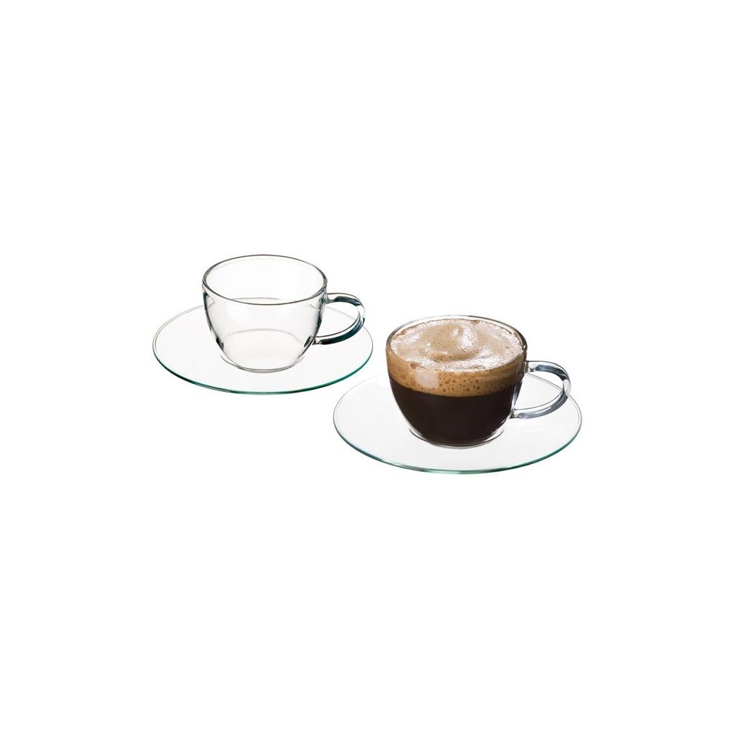 Skleněné šálky a podšálky jsou vyrobeny z vysoce kvalitního žáruvzdorného skla, které je odolné vůči teplotám od -40 °C do 300 °C a je určeno pro styk s potravinami. Sklo SIMAX je vysoce odolné vůči chemikáliím; je hladké a neporézní, dokonale průhledné a odolné vůči korozi. Každý šálek má objem 100 ml, což je skvělé pro přípravu espressa.Skleněné šálky na espresso - s podšálky