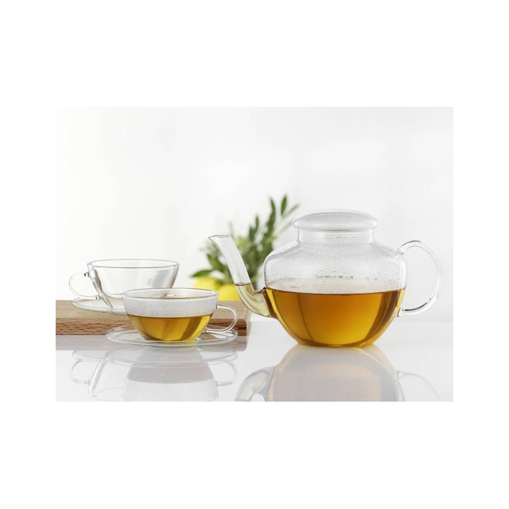 Skleněné šálky a podšálky jsou vyrobeny z vysoce kvalitního žáruvzdorného skla, které je odolné vůči teplotám od -40 °C do 300 °C a je určeno pro styk s potravinami. Sklo SIMAX je vysoce odolné vůči chemikáliím; je hladké a neporézní, dokonale průhledné a odolné vůči korozi. Každý šálek má objem 290 ml a je ideální na čaj a kávu, například cappuccino.Sada šálků SATURN