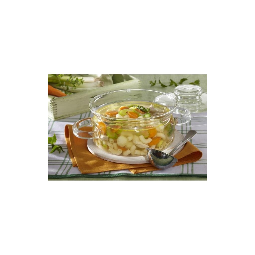 Skleněná mísa je vyrobena z vysoce kvalitního žáruvzdorného skla, které je odolné vůči teplotám od -40 °C do 300 °C a je určeno pro styk s potravinami. Sklo SIMAX je vysoce odolné vůči chemikáliím; je hladké a neporézní, dokonale průhledné a odolné vůči korozi. Skleněný hrnec má objem 1,5 l a je vhodný pro vaření, skladování v chladu a ohřívání. Na plynovém sporáku používejte hrnec společně s talířem k rozptýlení plamene.Skleněný hrnec na polévku