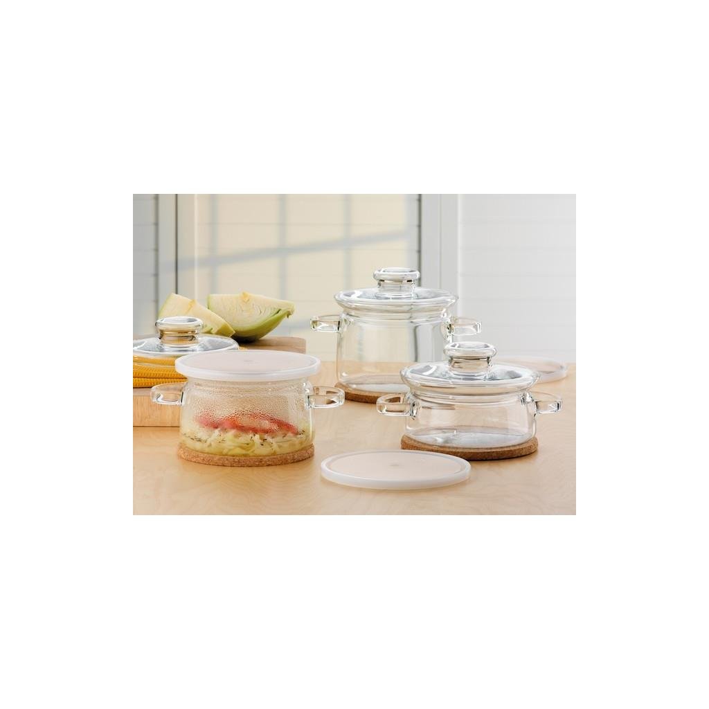 Skleněný hrnec lze mýt v myčce nádobí a používat v mikrovlnné troubě. Lze použít na všech typech sporáků kromě indukce; na plynových sporácích pouze s deskou s rozptylovačem plamene.
