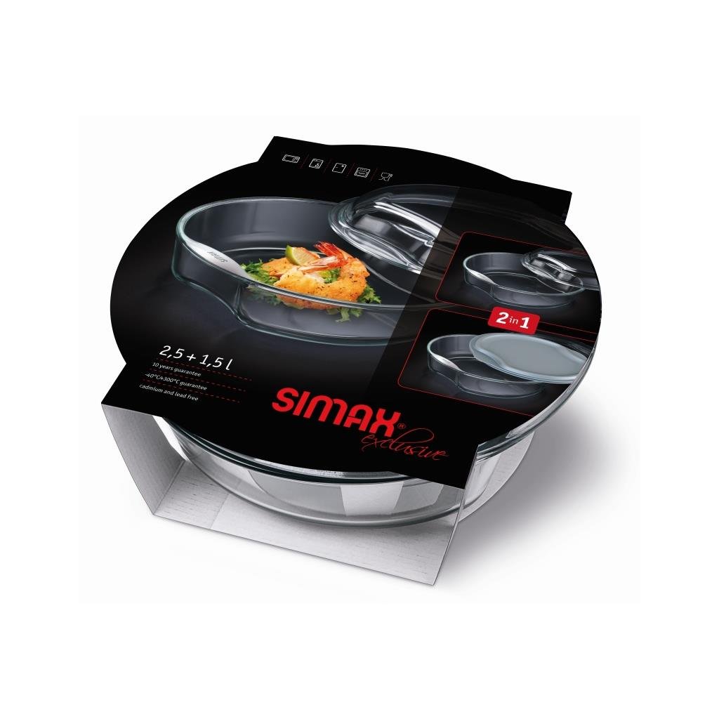 Sklenice SMART TOUCH se vyznačuje moderním tvarem a bezpečnou rukojetí; je vyrobena z vysoce kvalitního žáruvzdorného skla, které je odolné vůči teplotám od -40 °C do 300 °C a je určeno pro styk s potravinami. Sklo SIMAX je vysoce odolné vůči chemikáliím; je hladké a neporézní, dokonale průhledné a odolné vůči korozi. Skleněná nádoba je velmi praktická, protože je všestranně použitelná - hodí se na pečení, servírování, skladování v chladu i ohřívání potravin.Kulatá žáruvzdorná mísa s vyměnitelnými víky (skleněnými a plastovými)/forma na pečení a zapékání pokrmů ve všech typech trub