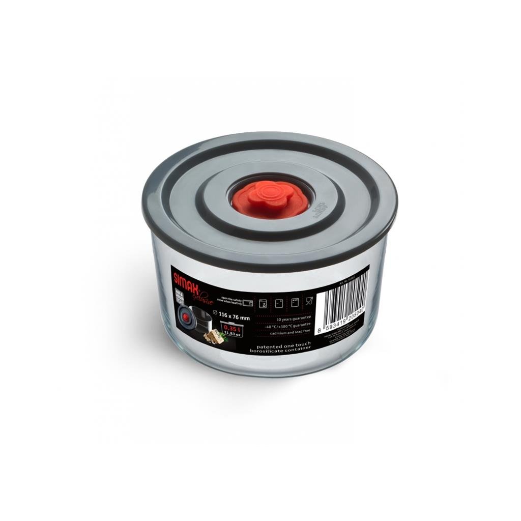 Skleněné nádoby jsou vyrobeny z vysoce kvalitního žáruvzdorného skla, které je odolné vůči teplotám od -40 °C do 300 °C a je určeno pro styk s potravinami. Sklo SIMAX má vysokou odolnost vůči chemikáliím; je hladké a neporézní, dokonale průhledné a odolné vůči korozi. Skleněné nádoby se skvěle hodí i pro skladování potravin v chladničce. Tepelně odolná nádoba s víkem s pumpičkou. Když nádobu zavřete a stisknete červené tlačítko uprostřed víka, přeruší se přívod vzduchu, takže potraviny zůstanou déle čerstvé. Chcete-li nádobu znovu otevřít, zatáhněte za stisknuté tlačítko směrem k sobě. Nádobu lze zmrazit, lze ji mýt v myčce nádobí, používat v mikrovlnné troubě a v troubě (pouze sklo).Smart Touch PUMP
