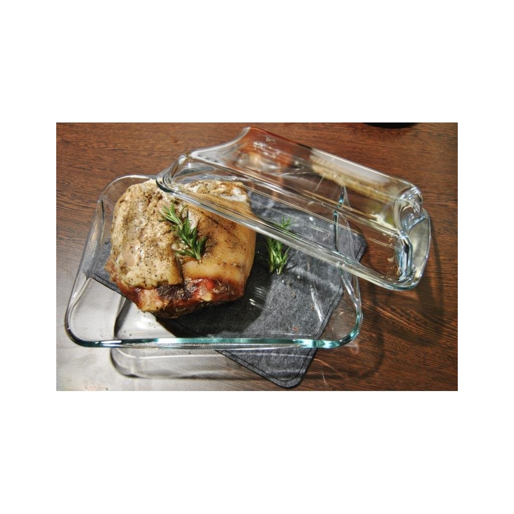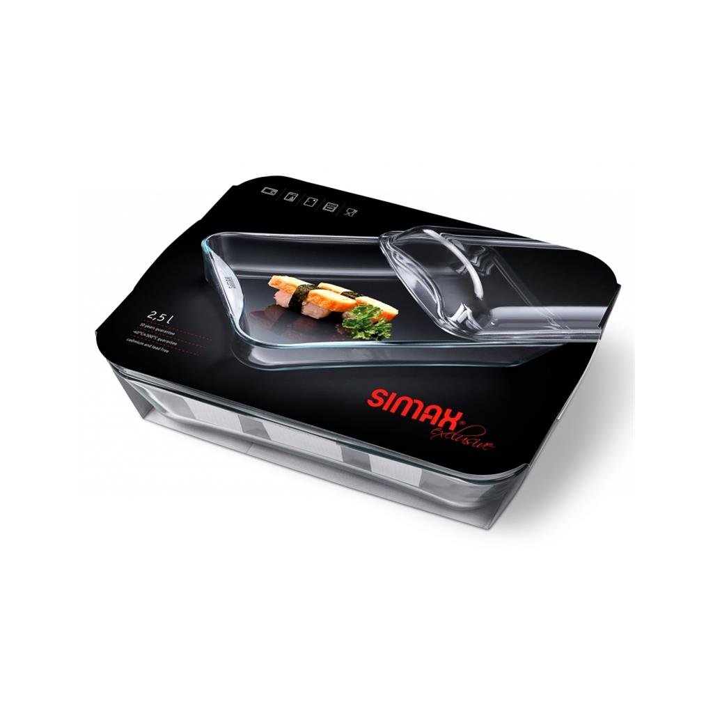 Sklenice SMART TOUCH se vyznačuje moderním tvarem a bezpečnou rukojetí; je vyrobena z vysoce kvalitního žáruvzdorného skla, které je odolné vůči teplotám od -40 °C do 300 °C a je určeno pro styk s potravinami. Sklo SIMAX je vysoce odolné vůči chemikáliím; je hladké a neporézní, dokonale průhledné a odolné vůči korozi. Skleněná nádoba je velmi praktická, protože je univerzální - vhodná na pečení, servírování, skladování v chladu, ohřívání potravin.Obdélníková žáruvzdorná nádoba s víkem/formou na pečení a zapékání pokrmů ve všech typech trub