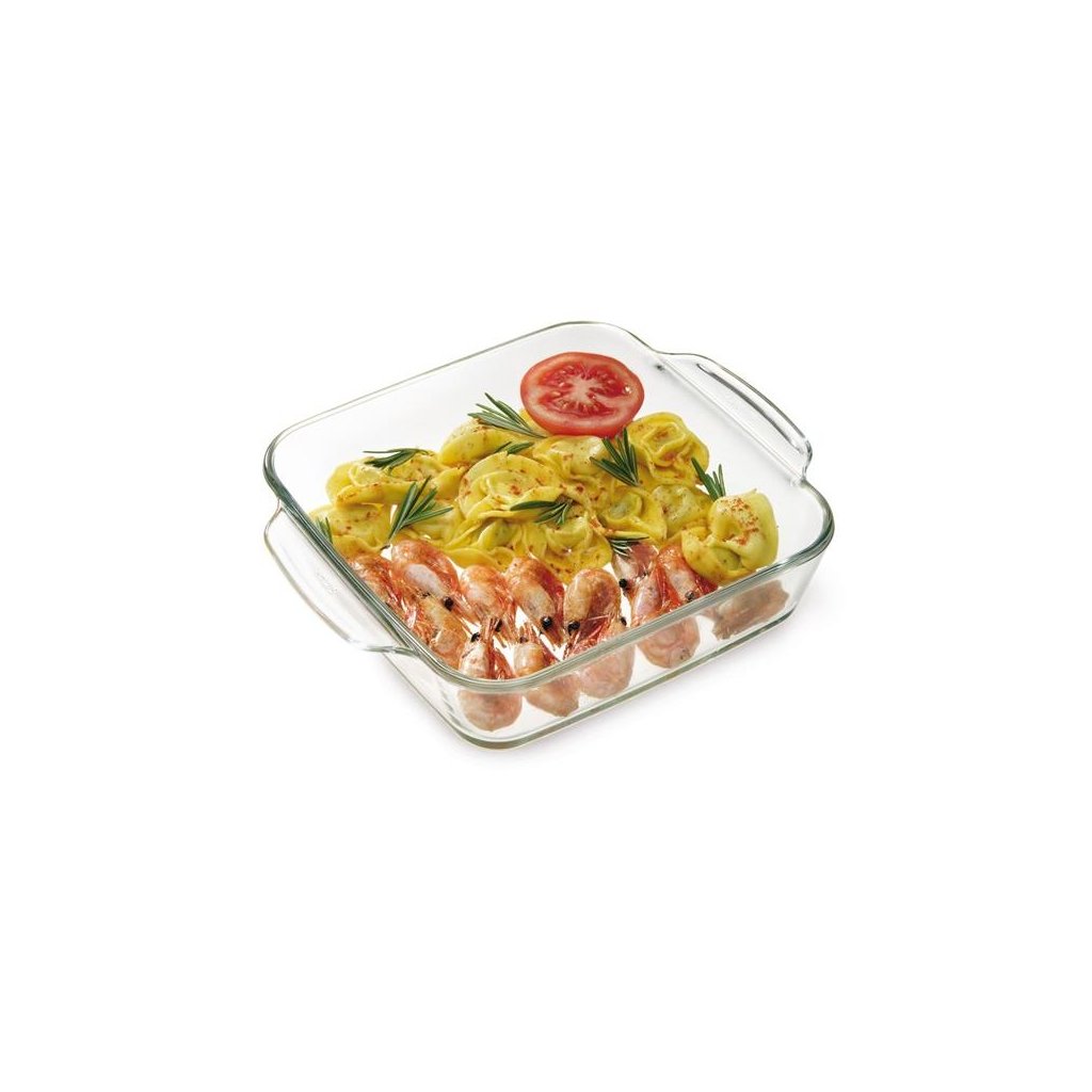 Čtvercová skleněná mísa je vyrobena z vysoce kvalitního žáruvzdorného skla, které je odolné vůči teplotám od -40 °C do 300 °C a je určeno pro styk s potravinami. Sklo SIMAX je vysoce odolné vůči chemikáliím; je hladké a neporézní, dokonale průhledné a odolné vůči korozi. Nádoba má objem 1,6 l a je univerzálně použitelná - na pečení, dušení i zapékání. Ideální pro přípravu zdravých jídel pro celou rodinu, např. lasagne, rýže zapečená s jablky a další slané nebo sladké pokrmy.Čtvercová skleněná zapékací mísa - bez víka