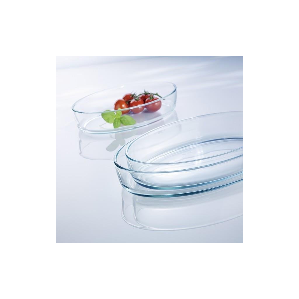 Skleněná oválná mísa je vyrobena z vysoce kvalitního žáruvzdorného skla, které je odolné vůči teplotám od -40 °C do 300 °C a je určeno pro styk s potravinami. Sklo SIMAX je vysoce odolné vůči chemikáliím; je hladké a neporézní, dokonale průhledné a odolné vůči korozi. Nádoba má objem 3 l a je univerzálně použitelná - na pečení, dušení i zapékání. Ideální pro přípravu zdravých pokrmů pro celou rodinu.Oválná žáruvzdorná mísa/forma na pečení a zapékání ve všech typech trub
