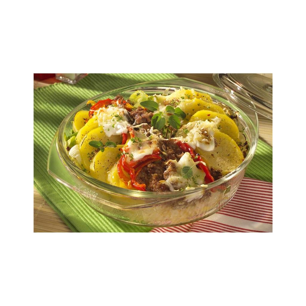 Kulatá skleněná mísa s víkem je vyrobena z vysoce kvalitního žáruvzdorného skla, které je odolné vůči teplotám od -40 °C do 300 °C, je určeno pro styk s potravinami a lze jej používat v jakékoli troubě. Sklo SIMAX je vysoce odolné vůči chemikáliím; je hladké a neporézní, dokonale průhledné a odolné vůči korozi. Mísa má objem 1,4 l a je univerzálně použitelná - na pečení, dušení i zapékání.Kulatá žáruvzdorná skleněná mísa s víkem/formou na pečení, zapékání a restování pokrmů v jakémkoli typu trouby