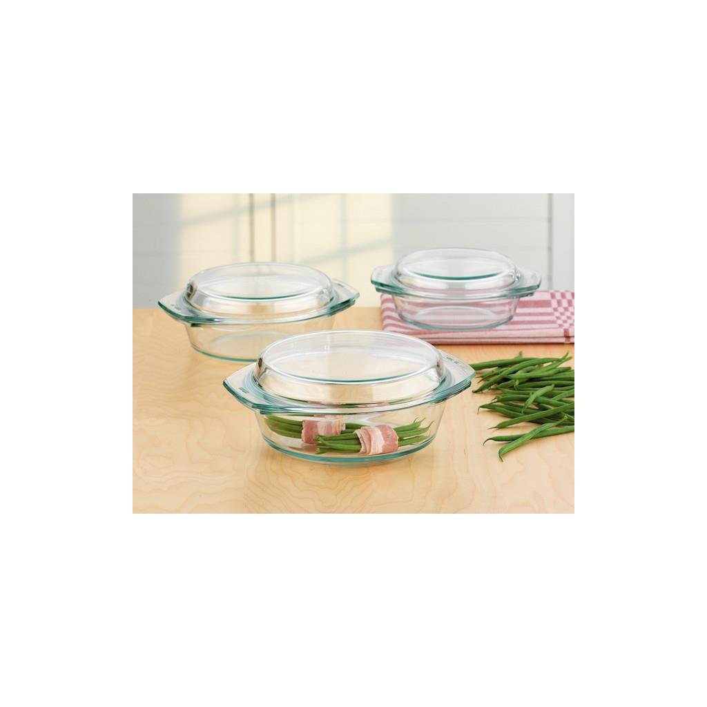 Kulatá skleněná mísa s víkem je vyrobena z vysoce kvalitního žáruvzdorného skla, které je odolné vůči teplotám od -40 °C do 300 °C, je určeno pro styk s potravinami a lze jej používat v každé troubě. Sklo SIMAX je vysoce odolné vůči chemikáliím; je hladké a neporézní, dokonale průhledné a odolné vůči korozi. Nádoba má objem [uveďte kolik]l a je univerzálně použitelná - na pečení, dušení, zapékání.Kulatá žáruvzdorná skleněná mísa s víkem/formou na pečení, zapékání ve všech typech trub Materiál: žáruvzdorné borosilikátové sklo