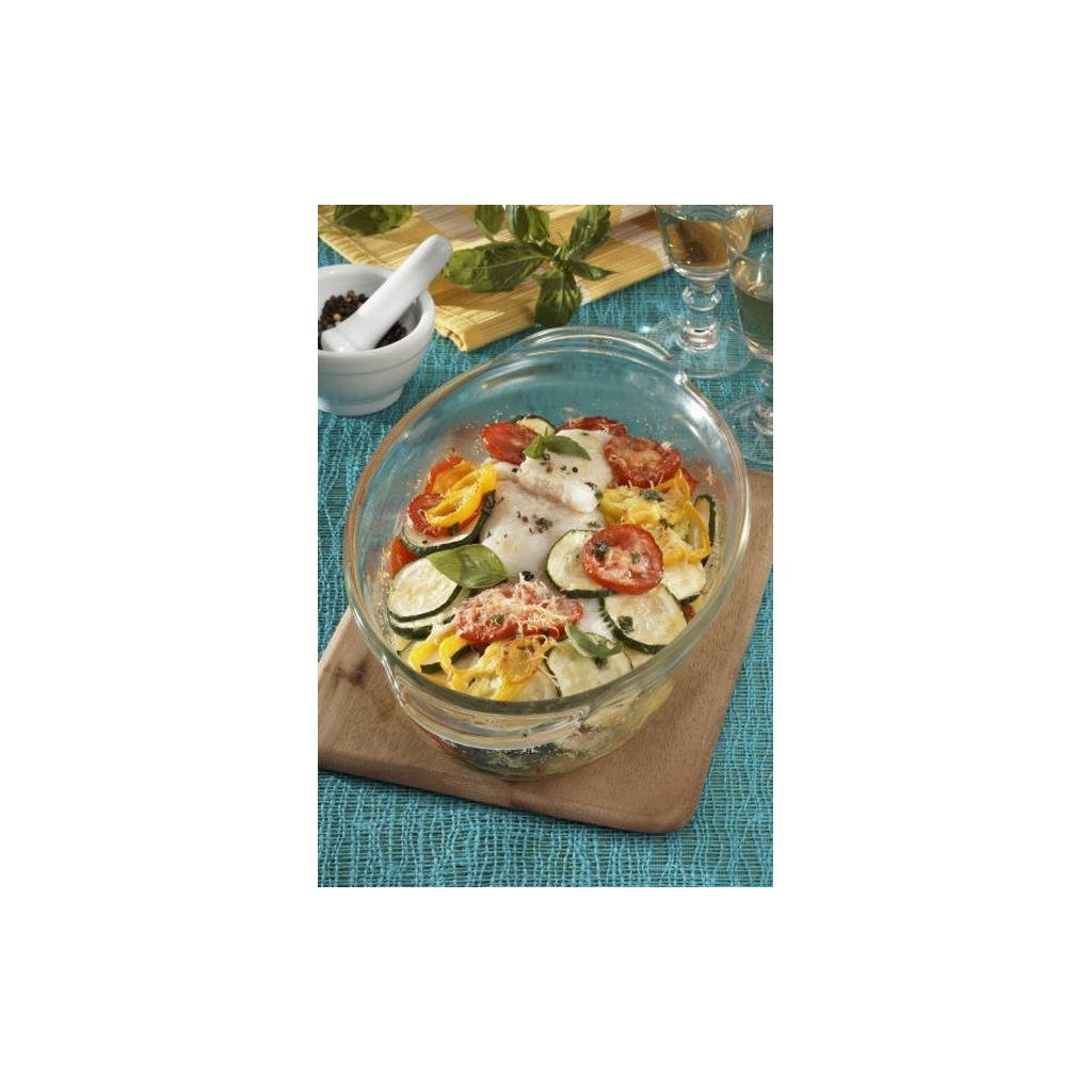 Oválná skleněná mísa s víkem je vyrobena z vysoce kvalitního žáruvzdorného skla, které je odolné vůči teplotám od -40 °C do 300 °C a je určeno pro styk s potravinami. Sklo SIMAX je vysoce odolné vůči chemikáliím; je hladké a neporézní, dokonale průhledné a odolné vůči korozi. Nádoba má objem 3,6 l a je univerzálně použitelná - na pečení, dušení i zapékání. Ideální pro přípravu zdravých jídel pro celou rodinu.Oválná žáruvzdorná mísa s víkem/formou na pečení, zapékání pokrmů ve všech typech trub