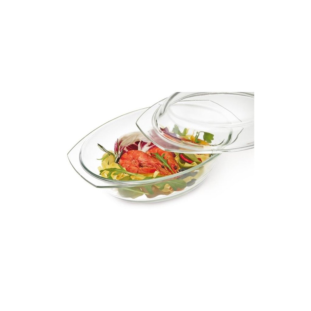 Oválná skleněná mísa s víkem je vyrobena z vysoce kvalitního žáruvzdorného skla, které je odolné vůči teplotám od -40 °C do 300 °C a je určeno pro styk s potravinami. Sklo SIMAX je vysoce odolné vůči chemikáliím; je hladké a neporézní, dokonale průhledné a odolné vůči korozi. Nádoba má objem 4,4 l a je univerzálně použitelná - na pečení, dušení i zapékání. Ideální pro přípravu zdravých pokrmů pro celou rodinu.Oválná žáruvzdorná mísa s víkem/formou na pečení a zapékání ve všech typech trub