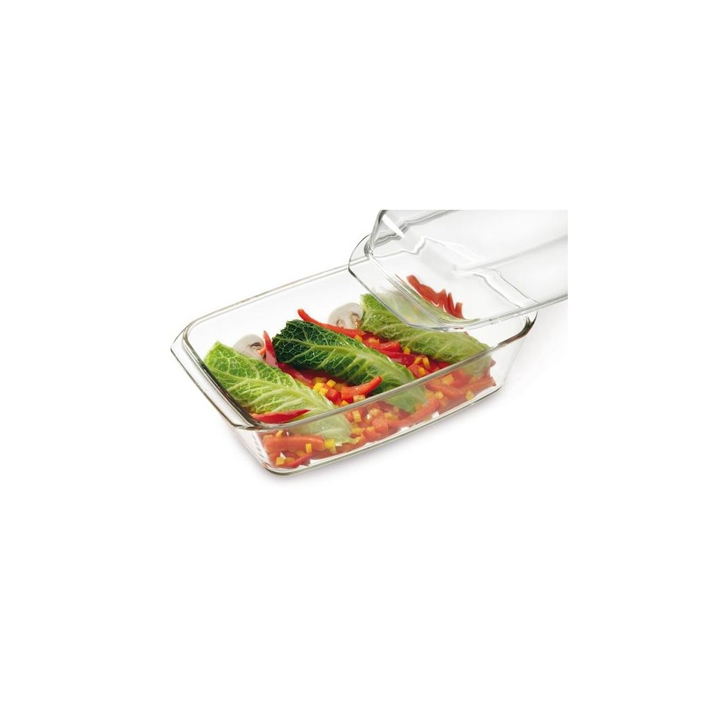 Obdélníková skleněná mísa s víkem je vyrobena z vysoce kvalitního žáruvzdorného skla, které je odolné vůči teplotám od -40 °C do 300 °C a je určeno pro styk s potravinami. Sklo SIMAX je vysoce odolné vůči chemikáliím; je hladké a neporézní, dokonale průhledné a odolné vůči korozi. Nádoba má objem 5,4 l a je univerzálně použitelná - na pečení, dušení i zapékání. Ideální pro přípravu zdravých jídel pro celou rodinu.Obdélníková žáruvzdorná nádoba s víkem/formou na pečení, zapékání pokrmů ve všech typech trub