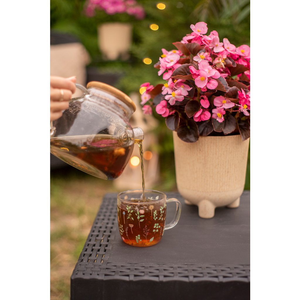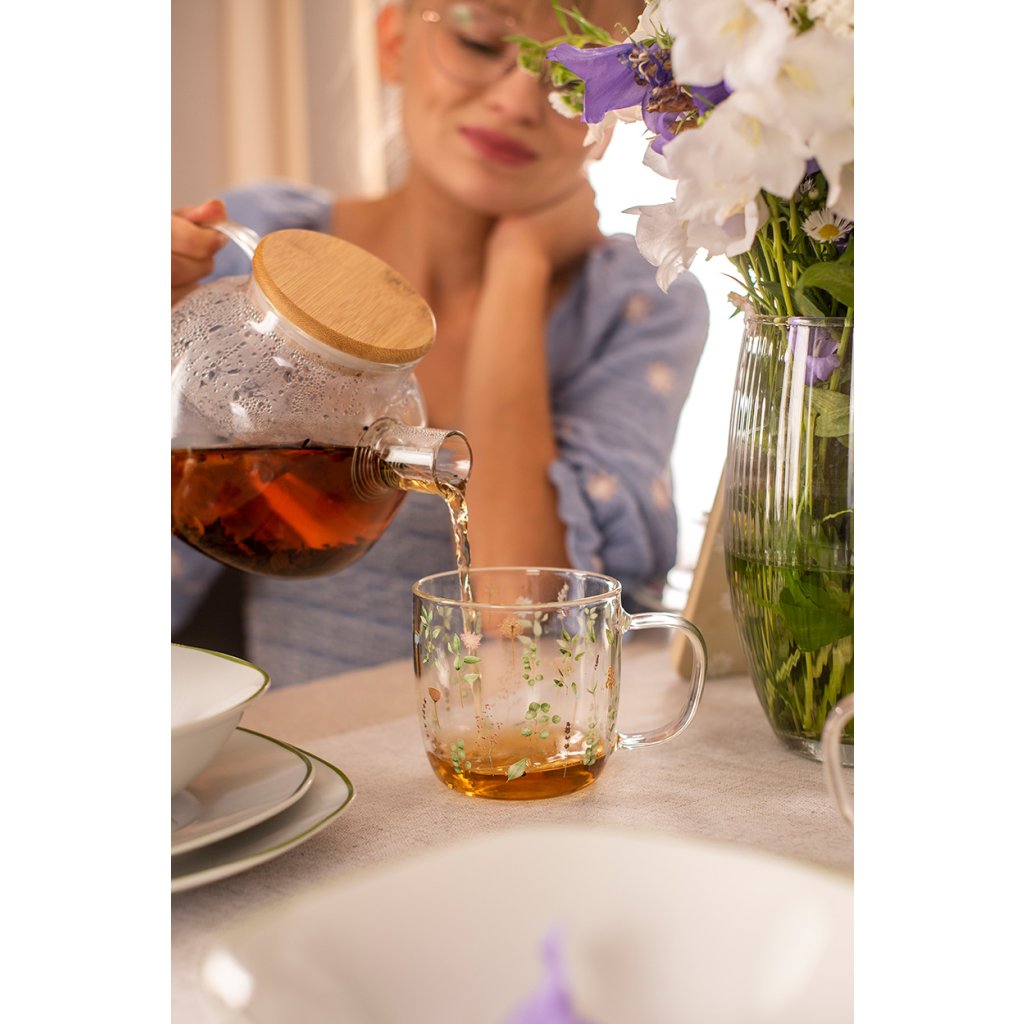 Čajník je vyroben z nejkvalitnějšího borosilikátového skla a je vybaven bambusovým víčkem s bezpečným silikonovým kroužkem. Díky tomu se nádoba velmi snadno udržuje čistá. Kovový filtr nainstalovaný uvnitř vám umožní uvařit jakýkoli druh čaje nebo bylinek dle vašeho výběru. Díky svému jednoduchému stylu skvěle zapadne jako dekorační prvek do vaší kuchyně.Doplňkové parametry