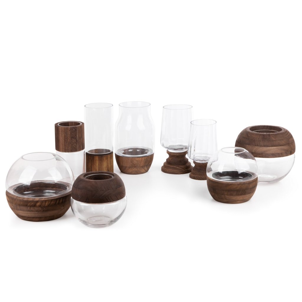 Šířka dekorativní vázy: (fi) 18 cm, délka: 26 cm, barva: bílá/hnědá, složení: 70 % sklo; 30 % dřevo.Doplňkové parametry