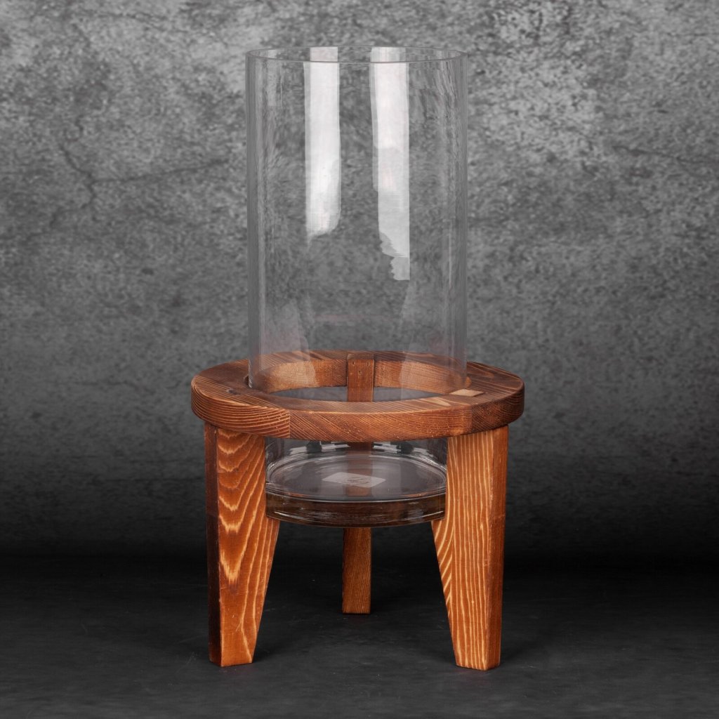 Dekorativní váza šířka: (fi) 19 cm, délka: 18 cm, barva: bílá / světle hnědá, složení: 70% sklo; 30% dřevoDoplňkové parametry