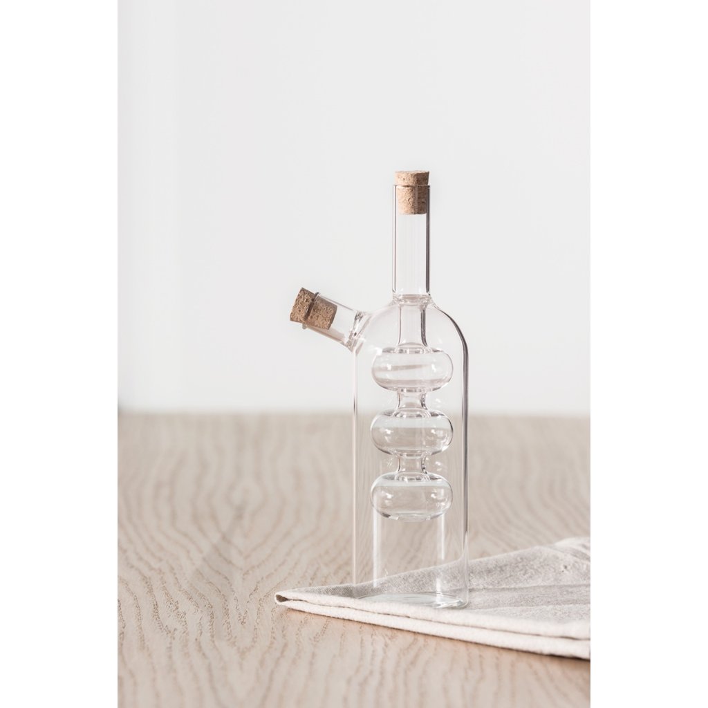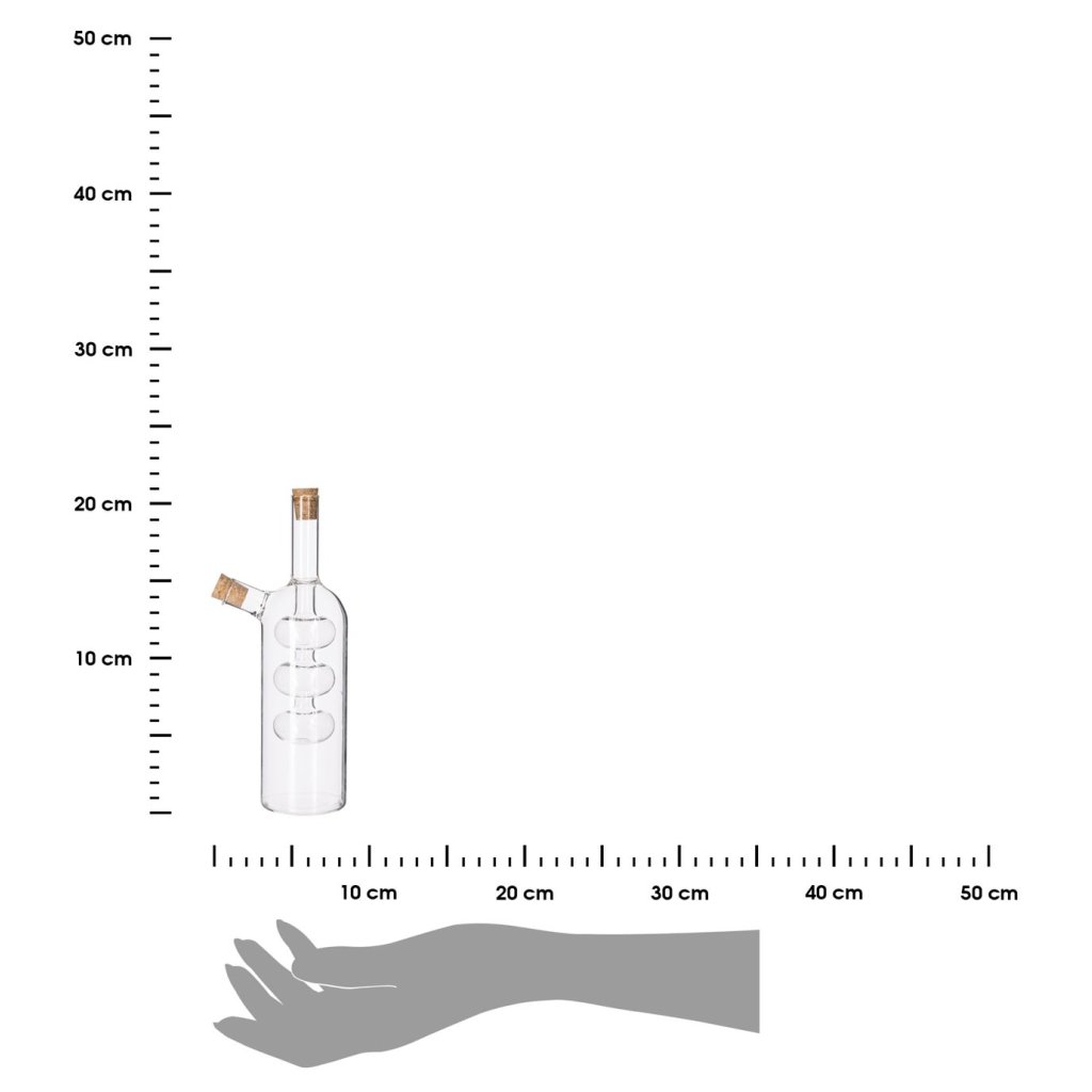 Originální karafa, která umožňuje pohodlné dávkování oleje a octa. Karafa je vyrobena z kvalitního skla a kromě funkčnosti je také vizuálně atraktivní. Plněná olejem a octem vypadá jedinečně a skvěle se hodí na kuchyňskou linku i na stůl při podávání jídel. Díky tomu, že tvoří jeden celek, můžeme ušetřit místo ve skříňce nebo na desce.Nemyjte v myčce na nádobí. Nepoužívejte v mikrovlnné troubě ani v troubě.
