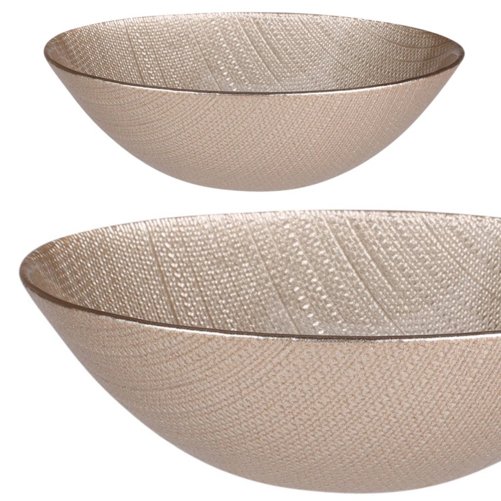 Skleněná mísa v elegantním odstínu šampaňského je dokonalým spojením stylu a funkčnosti. Díky své jemné, ale efektivní textuře je ideální pro servírování snacků, ovoce, salátů nebo dezertů. Vyrobená z kvalitního skla, které je odolné, estetické a snadno se udržuje čisté.Rozměr : 15x5 cm