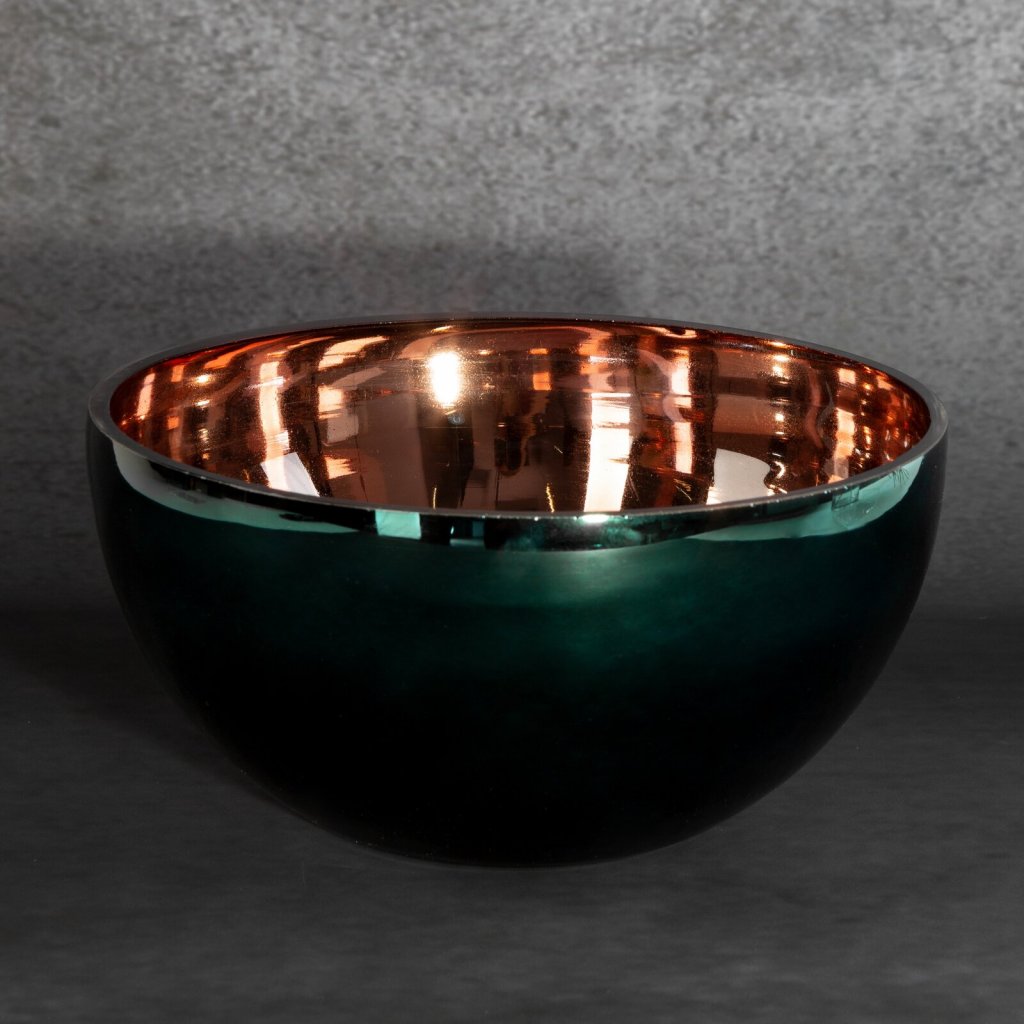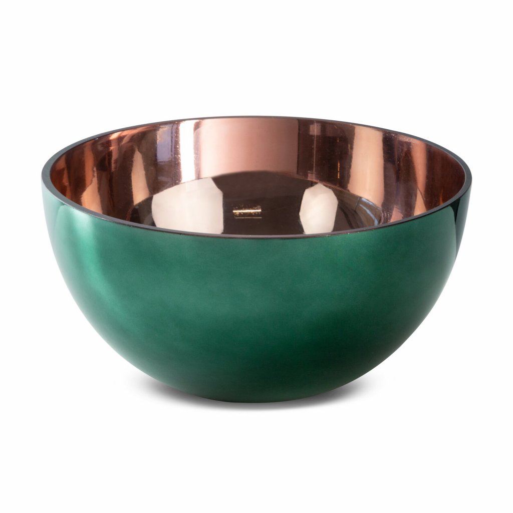 Skleněná mísa z limitované kolekce. Průměr: 25 cm, výška: 13 cm, barva: zelená/měděná, složení: 100% sklo.Doplňkové parametry