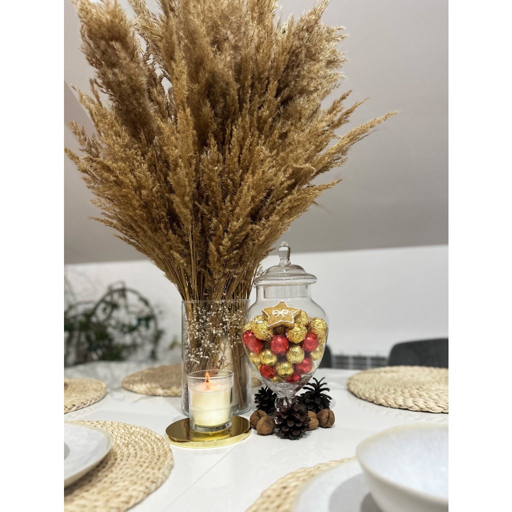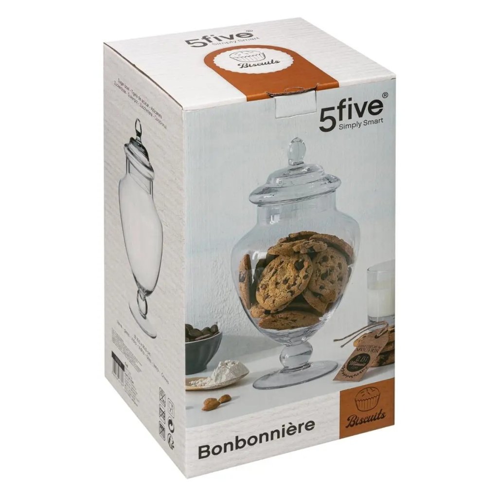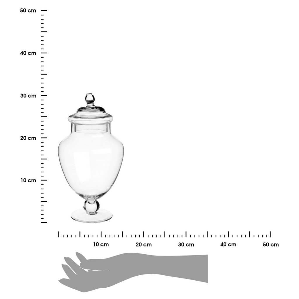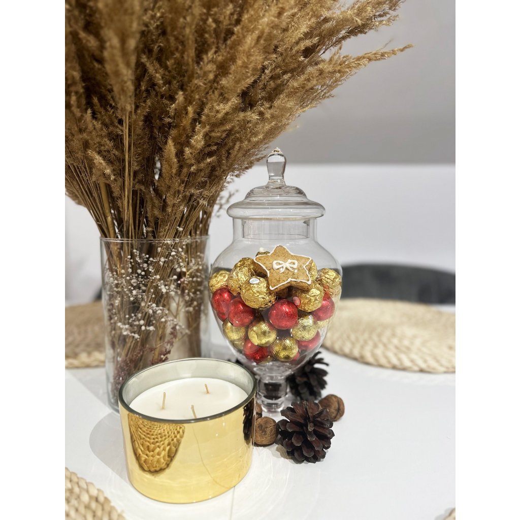 Skleněná nádoba na uskladnění sladkostí, která bude ozdobným prvkem každé kuchyně. Do nitra můžete umístit křehké pečivo, bonbóny, piškoty, oplatky, čokolády nebo sušenky. Celá nádoba je vyrobena z kvalitního tlustého skla, díky čemuž je nádoba odolná a zaručuje těsnost. Víko je vybaveno pohodlnou rukojetí pro snadné otevírání. Díky svému univerzálnímu designu se nádoba vejde do klasických i modernějších aranžmá a dodá interiéru styl a originalitu. Další výhodou nádoby je její atraktivní vzor, který z ní činí elegantní dekoraci stolu.Nemyjte v myčce nádobí. Nepoužívejte v mikrovlnné troubě ani v troubě.