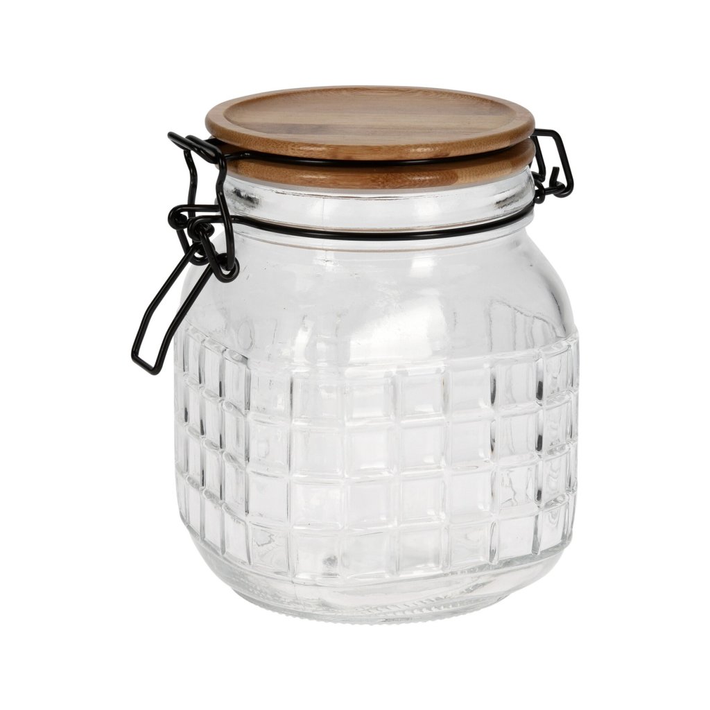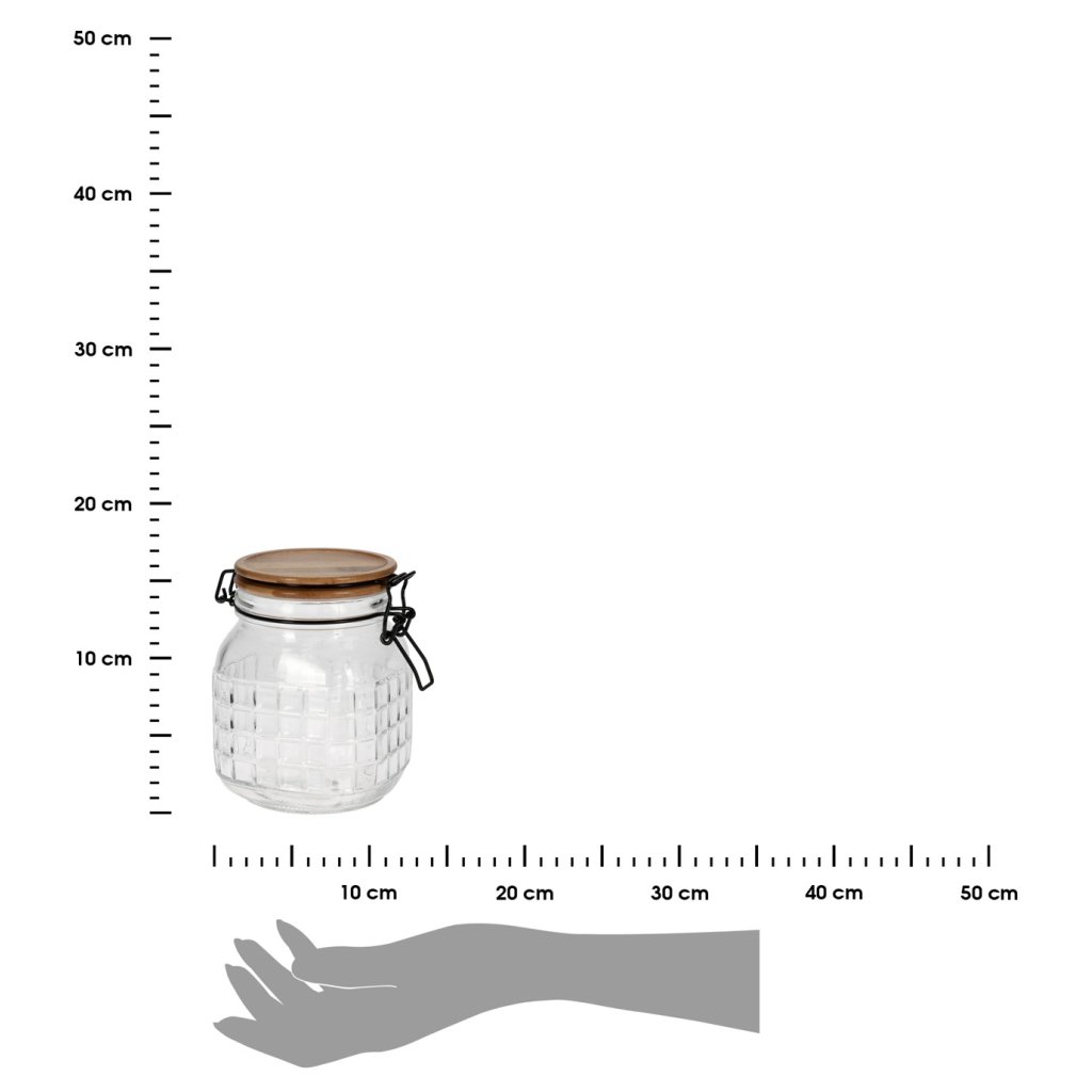 Nádoby na potraviny jsou nezbytnou součástí výbavy a zároveň i ozdobným prvkem každé kuchyně. Mohou být použity ke skladování koření, čaje, kávy nebo jiných suchých produktů. Dóza se uzavírá sponou se vzduchotěsným bambusovým uzávěrem.Rozměry: 14x14 cm