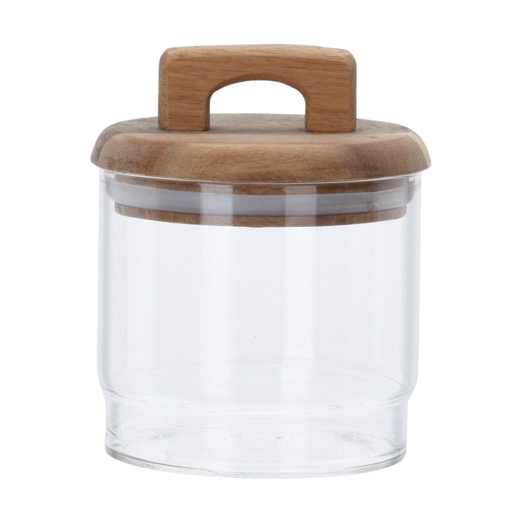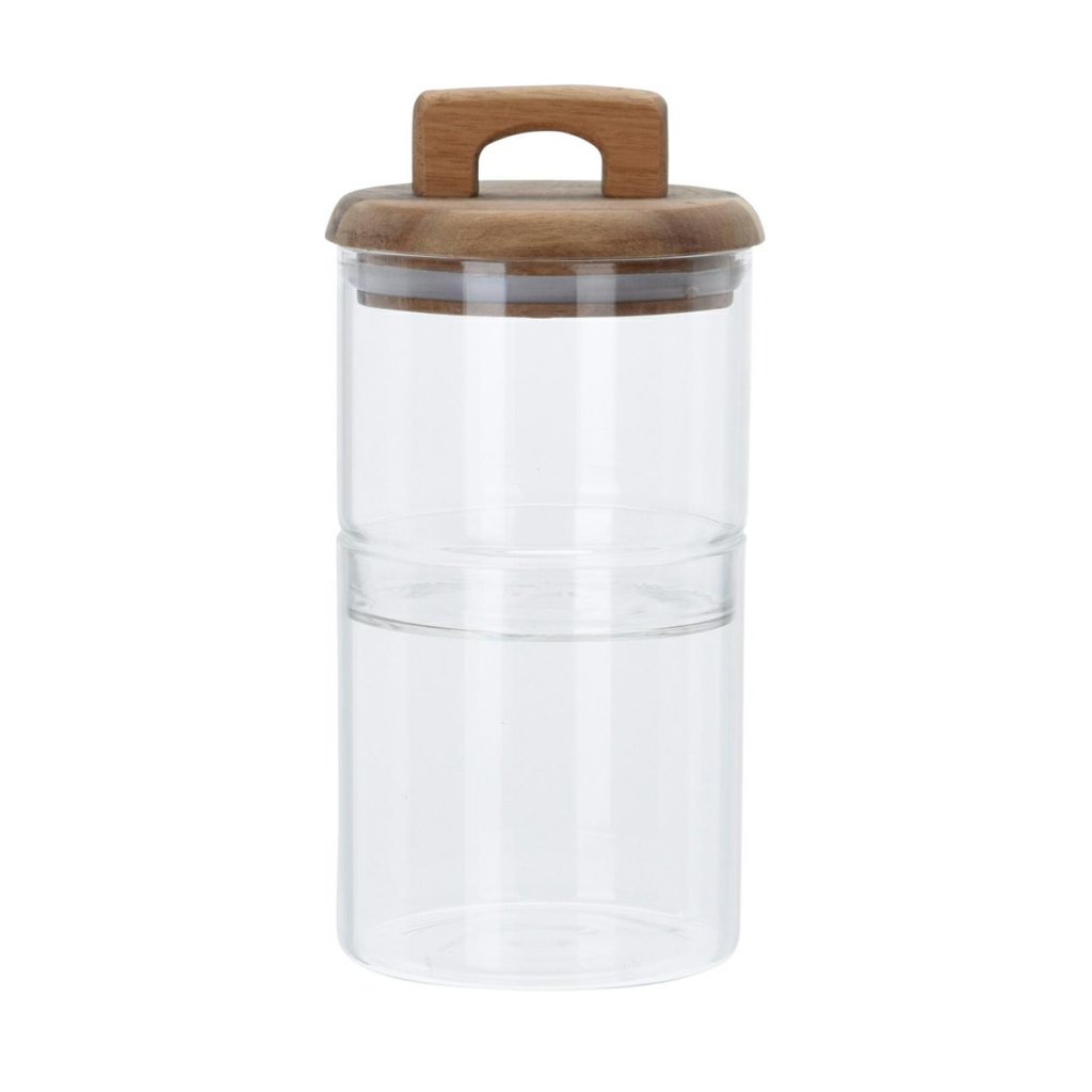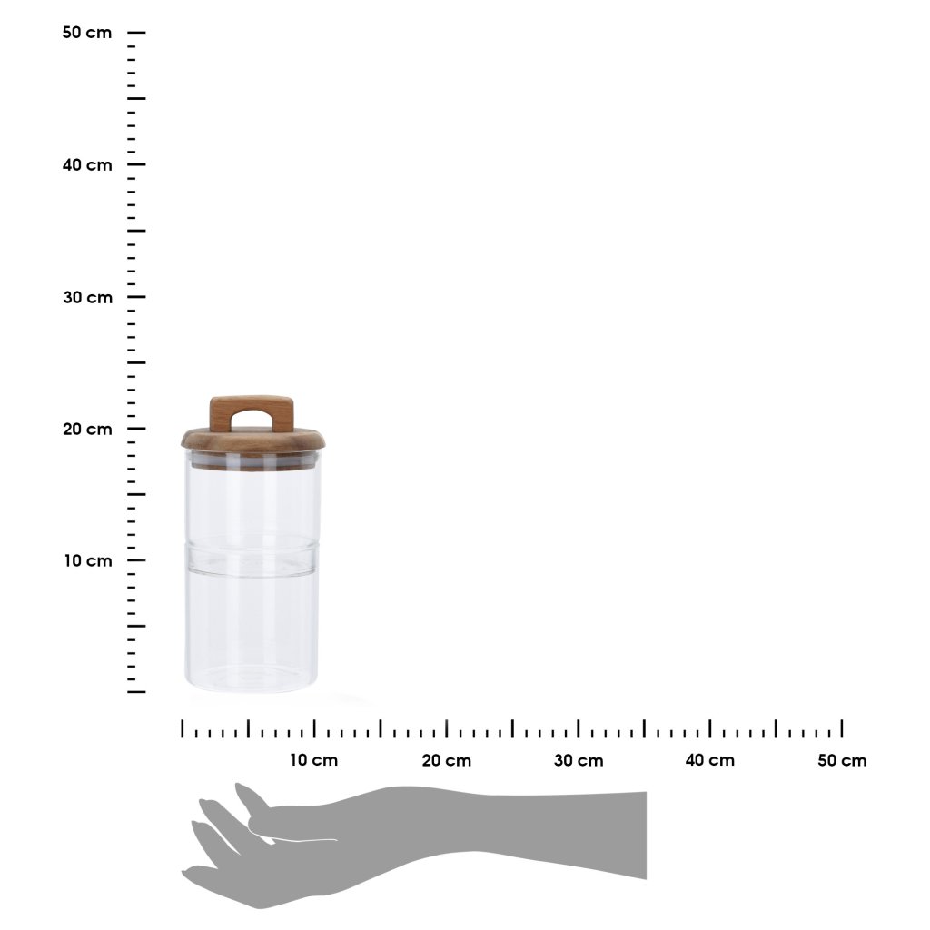 Praktická dóza pro skladování produktů, která umožní lepší organizaci v kuchyni, koupelně nebo jakékoli jiné místnosti v domě. Nádoba se vyznačuje estetickým víkem z akáciového dřeva a chytrou rukojetí. Má také silikonové těsnění, které zajišťuje těsné uzavření. Skládá se ze dvou částí, což umožňuje pohodlné a praktické skladování produktů.Nádoba je vyrobena z borosilikátového skla. Proto nereaguje s jídlem. Kromě toho je odolná vůči poškození a vůči extrémním teplotám.
