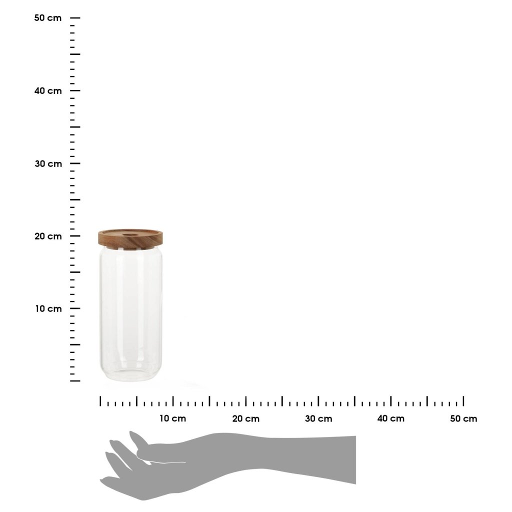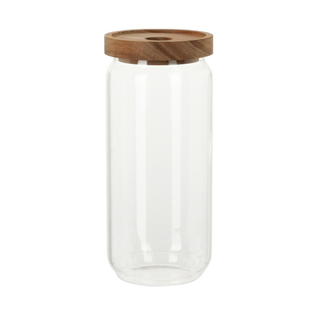 Klasická průhledná dóza s dřevěným víkem, ideální do kuchyně. Ideální pro skladování sypkých produktů. Průhledné sklo umožňuje vidět obsah nádoby a zajímavě zobrazit její obsah, proto je nejen praktickou vychytávkou, ale také dekorativní. To, co ji činí okouzlující, je víko z akáciového dřeva s těsněním a otvorem uprostřed. Díky tomu zůstanou uskladněné produkty déle čerstvé.Nádoba je vyrobena z borosilikátového skla. Proto nereaguje s jídlem. Kromě toho je odolná vůči poškození a vůči extrémním teplotám.