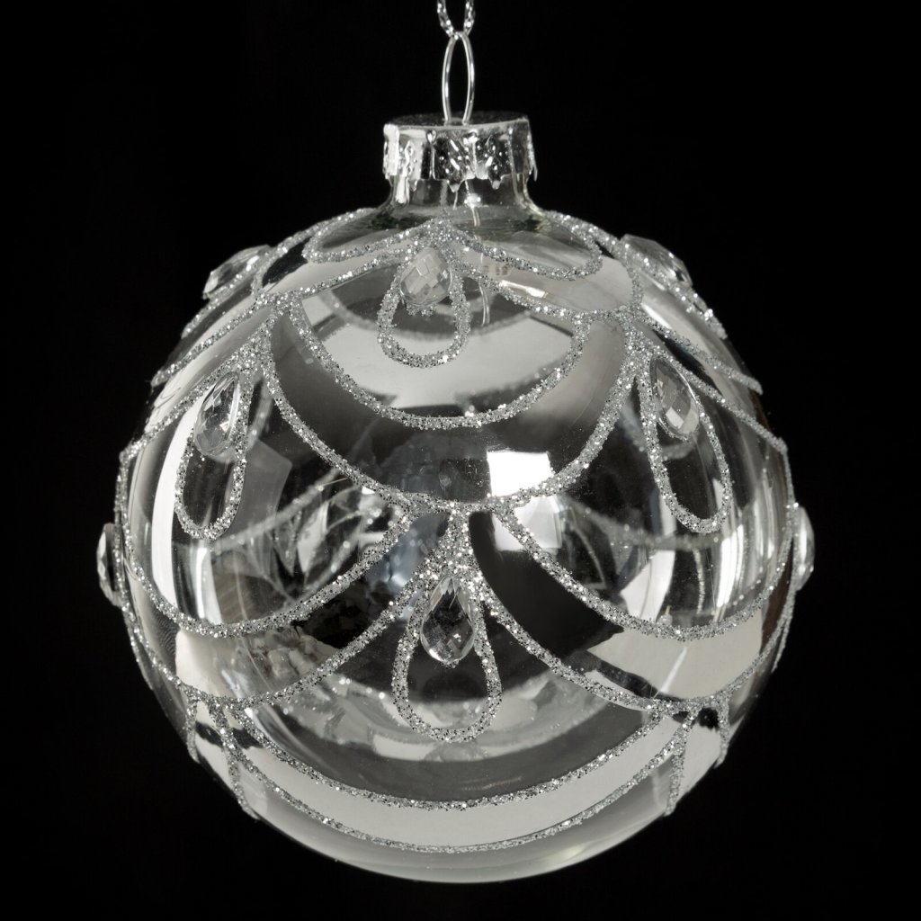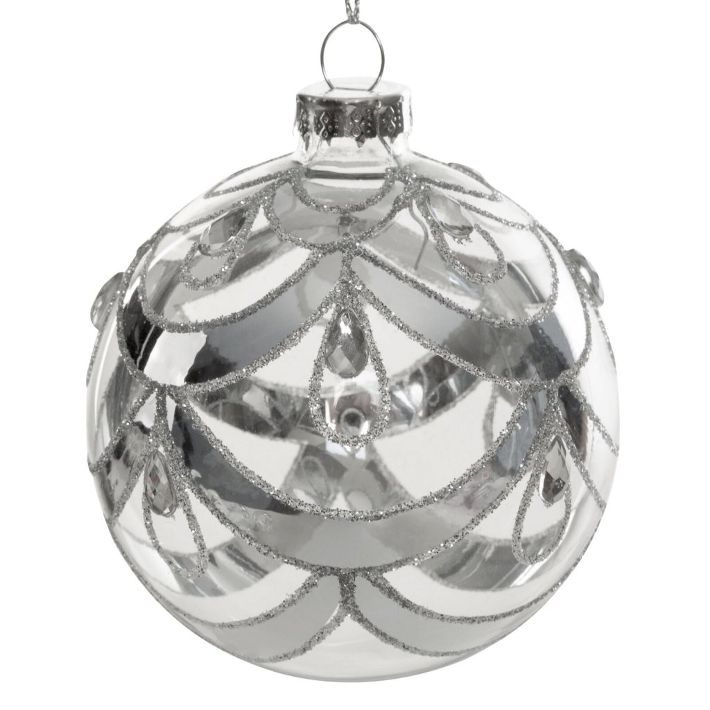 Skleněná vánoční koule je výjimečná dekorace zdobená elegantním vzorem, která dodá vašemu stromečku rafinovaný charakter. Klasická skleněná ozdoba je nezbytným doplňkem sváteční výzdoby a bude se krásně vyjímat na tmavě zelených větvích stromku, vánočním věnci nebo aranžmá. Vzor ve stříbrné barvě působí elegantně a lze jej snadno kombinovat s dalšími ozdobami v podobném odstínu, ale také s dekoracemi v kontrastních barvách.Barva: stříbrná.