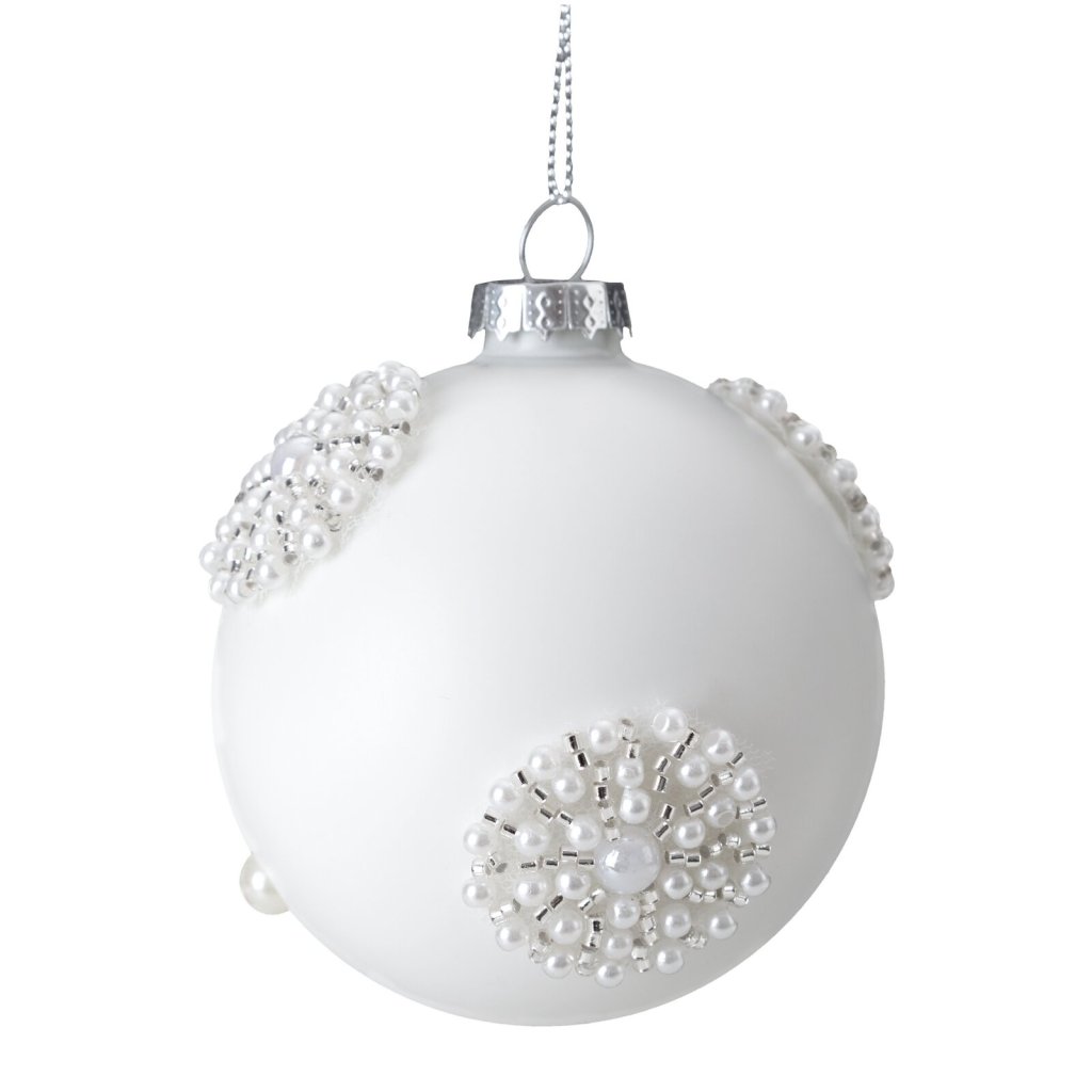 Skleněná koule zdobená perlami, barva: bílá, složení: 100% sklo.Doplňkové parametry